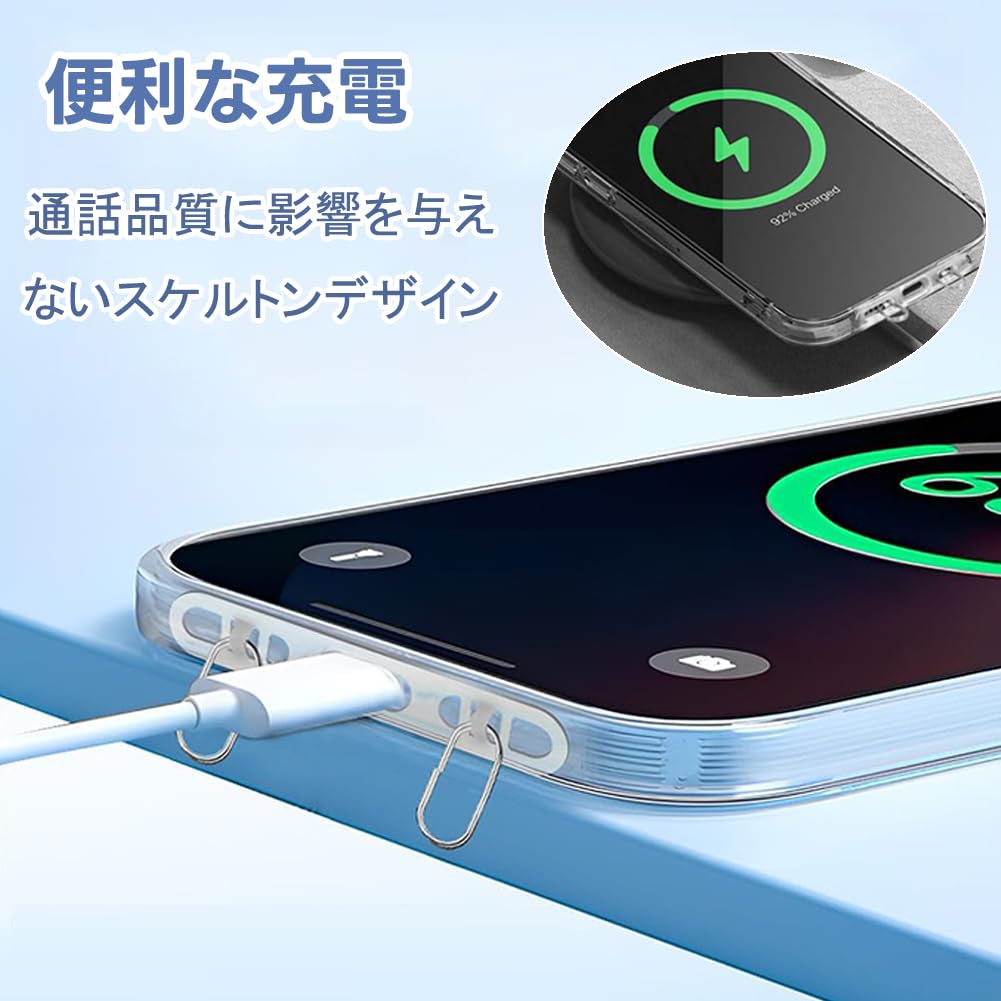 【充電に影響を与えない】この携帯ストラップクリップはわずか0.4mmの薄さで、このストラップクリップをクリップすることで、何も装着していないような体験を実現します。 ケースのスピーカーポートから装着することで、充電ケーブルの接続を全く妨げず、ステッカーをクリップしてもヘッドセットのケーブルを充電したり、差し込んだりすることができます。