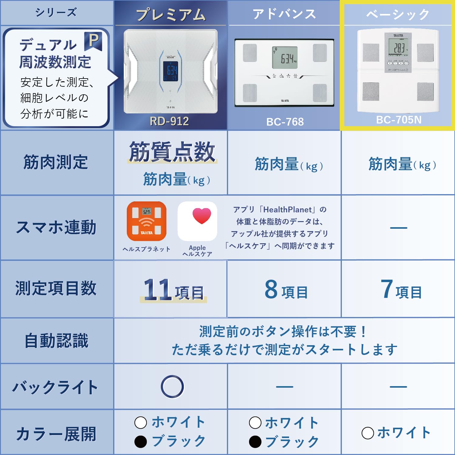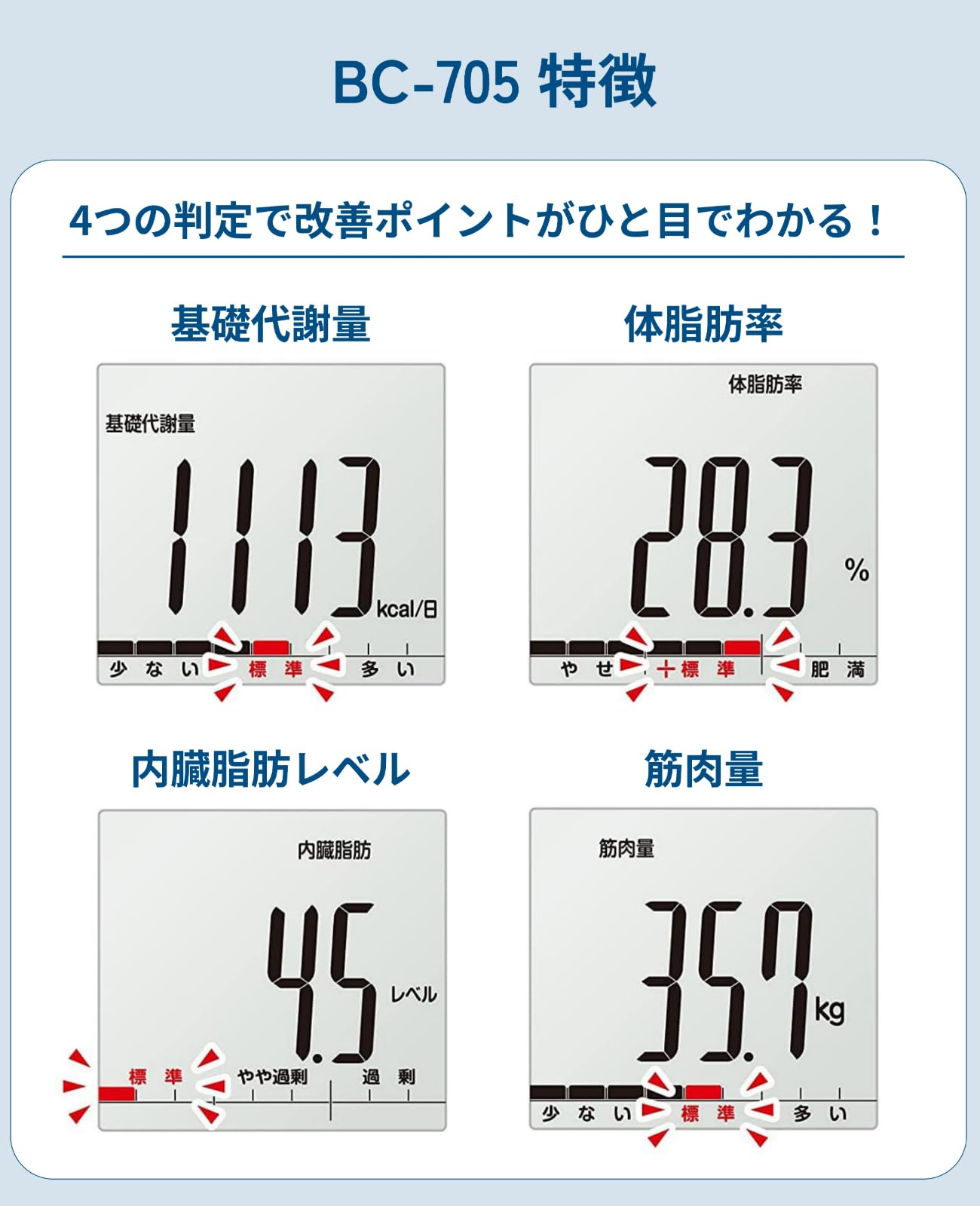 【2022最新】タニタ 体重計 体組成計 ヘルスメーター BC-705N【体脂肪率/内臓脂肪レベル/筋肉量/基礎代謝量/体内年齢/BMI/日本製/乗るピタ】