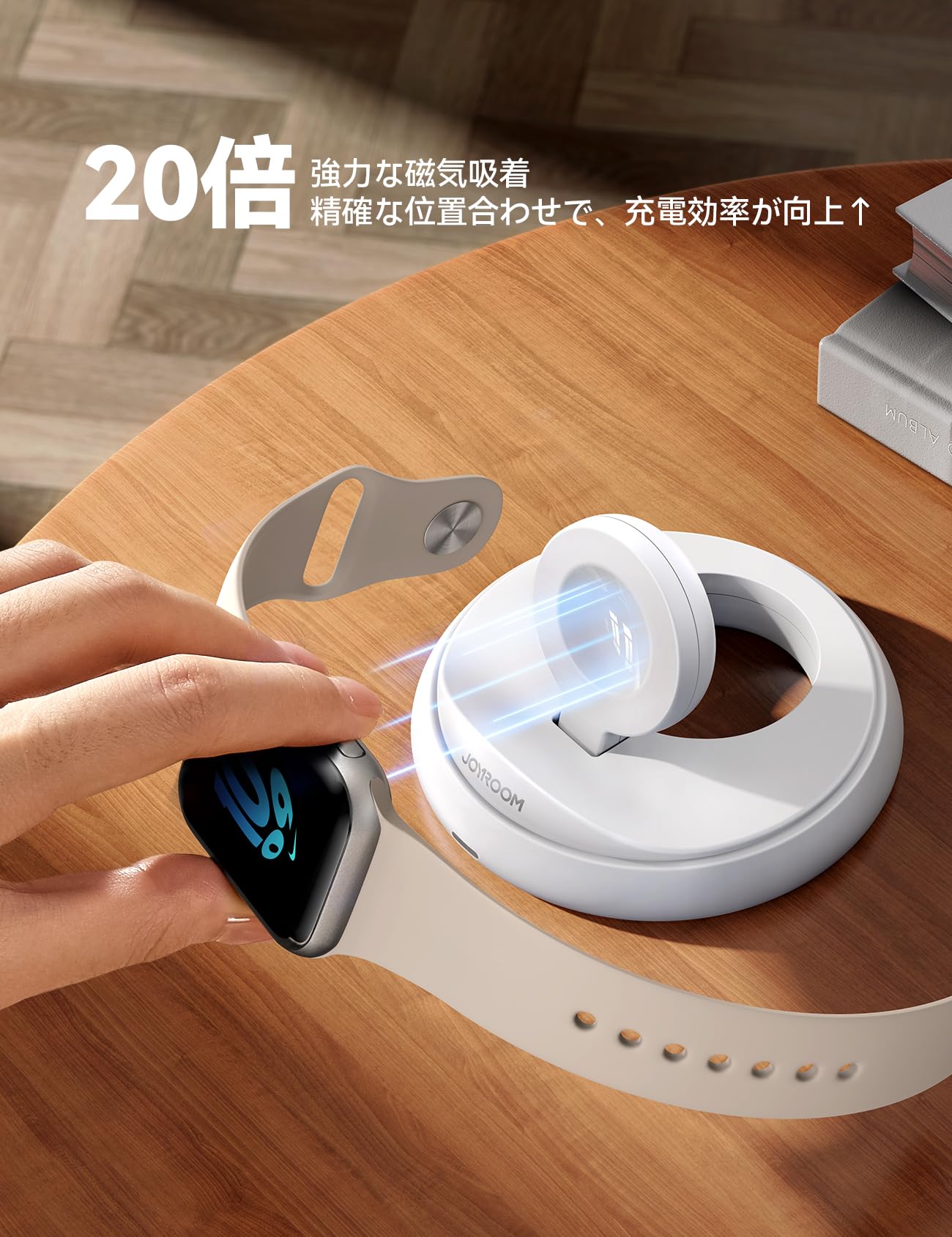 Joyroom アップルウォッチ 充電器 【業界初!0-90°可変角度】apple watch用 超強磁力 アップルウォッチ スタンド ワイヤレス磁気急速充電 ナイトスタンド USB-C ケーブル付きApple Watch Series Ultra2 Ultra SE2 SE 10 9 8 7 6 5 4 3 2対応 置くだけで 安定性アップ(White)