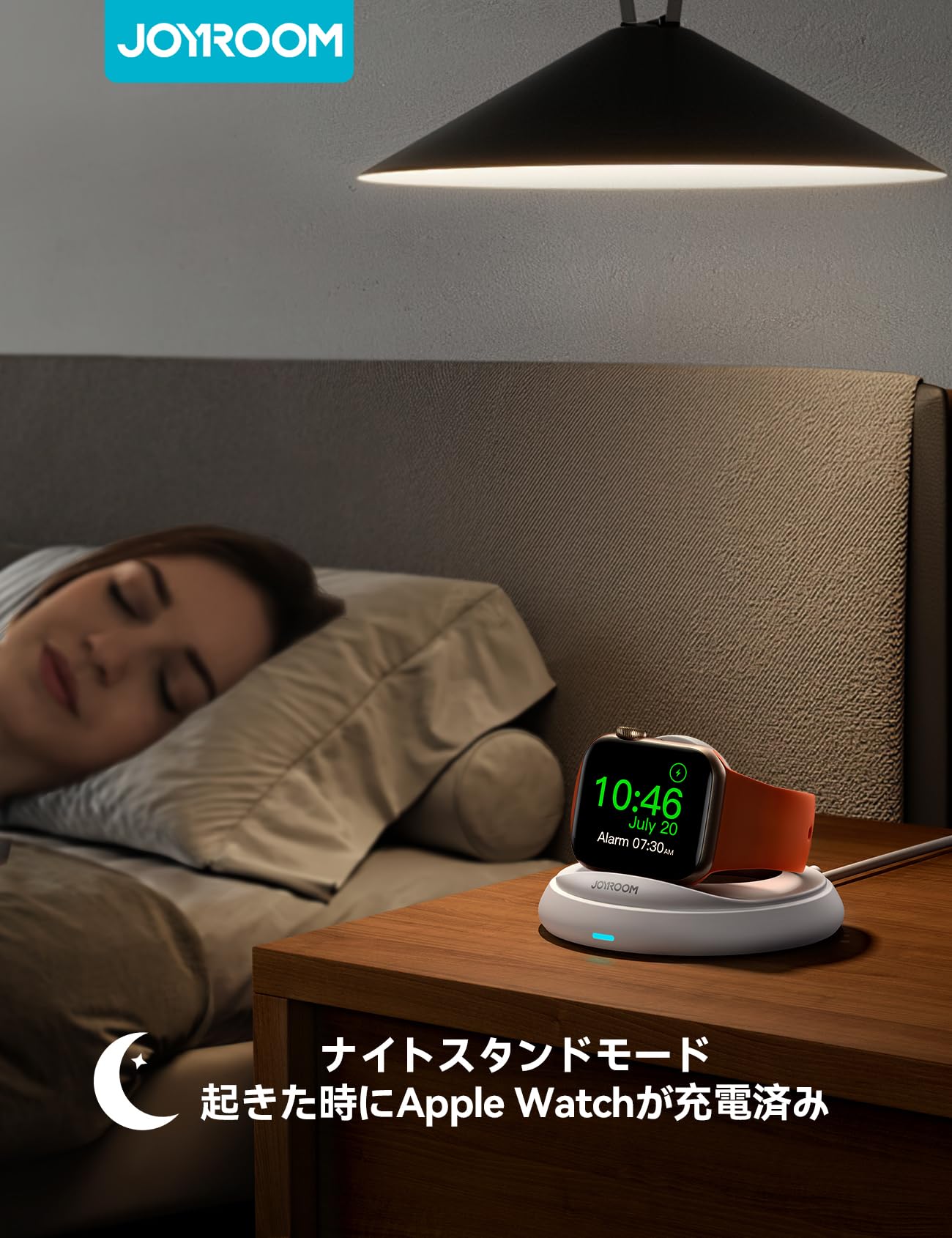 【ナイトスタンドモード対応】このApple Watch充電スタンドでは、充電中に時計として使用できます。ベッドのそばに置いて、夜間中にApple Watchを充電し、翌朝には完全に充電されるようにします。(注意:ナイトスタンドモードを使用する前に、Apple Watchの設定で事前にナイトスタンドモードを有効にしてください。)