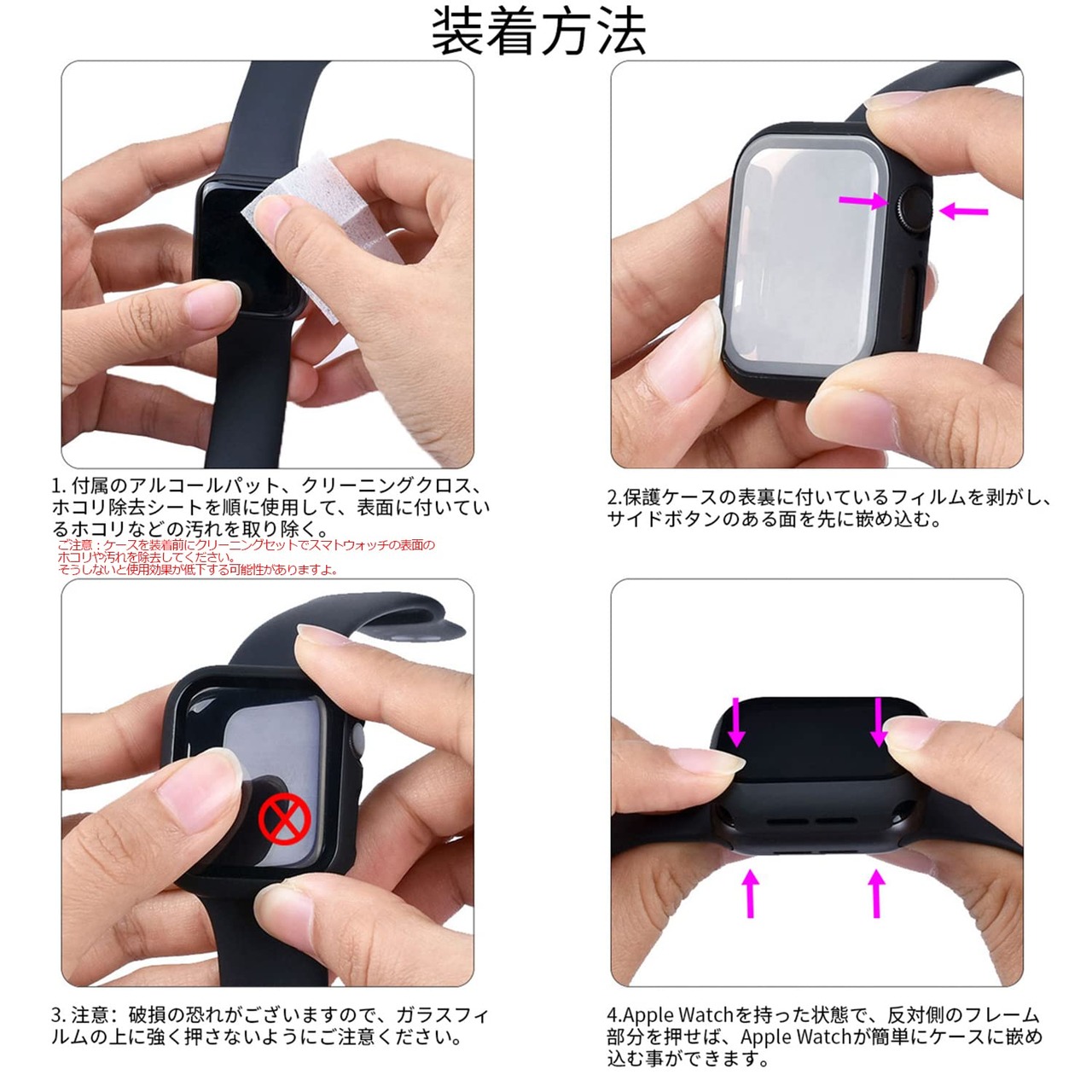 【高級感が溢れるデザイン&装着が簡単】 Apple Watchガラスフィルム+保護カバーの融合された革新的な一体型デザイン。取付け道具不要、本体の上から嵌めるだけで楽に装着できます。従来のフィルム貼りの手間も省けます。
