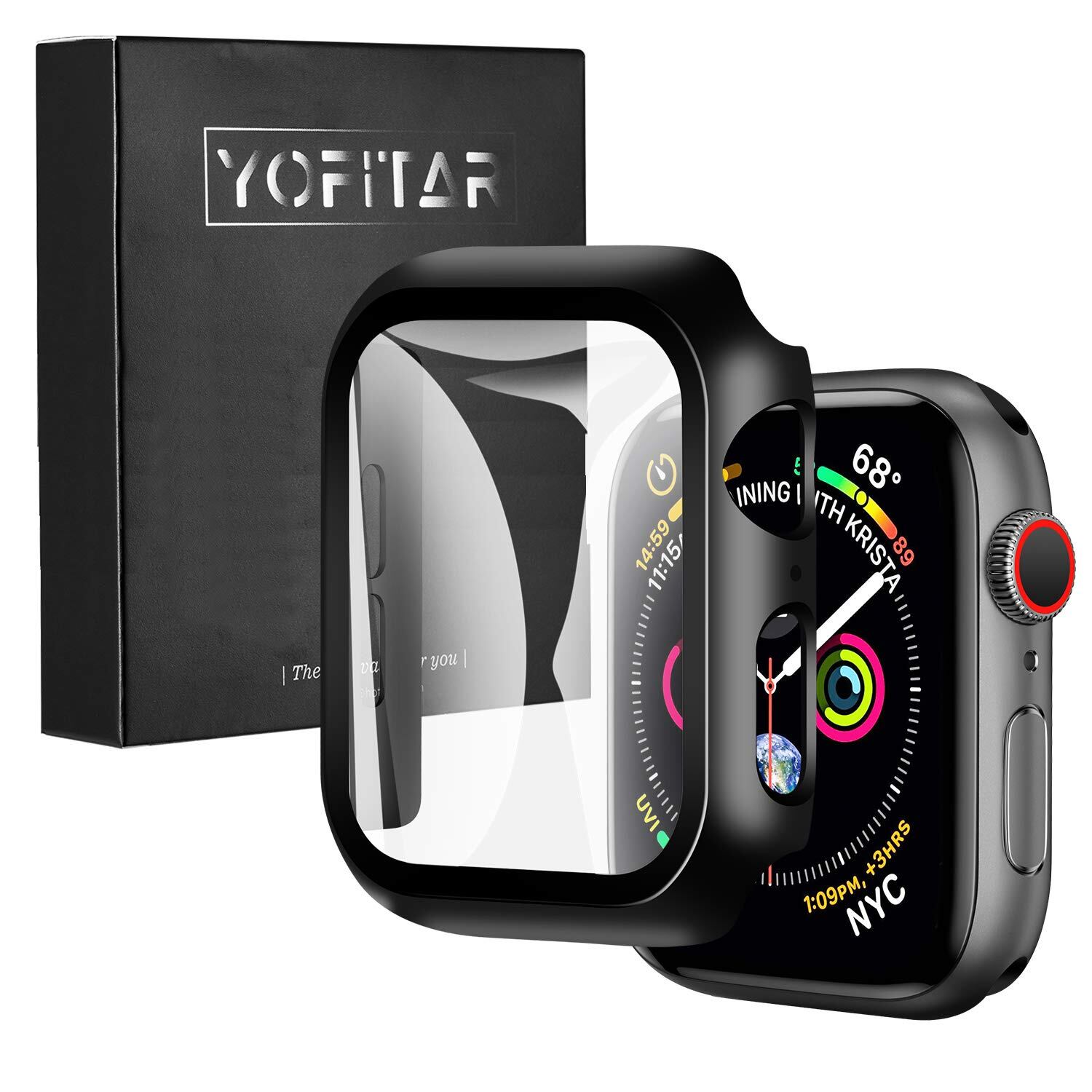 YOFITAR Apple Watch 用 ケース Apple Watch Ultra 2/Ultra/9/8/7/SE2/6/SE/5/4/3/2/1 アップルウォッチ保護カバー ガラスフィルム 一体型 PC素材 全面保護 超薄型 装着簡単 耐衝撃 高透過率 指紋防止 傷防止 (44mm,ブラック)