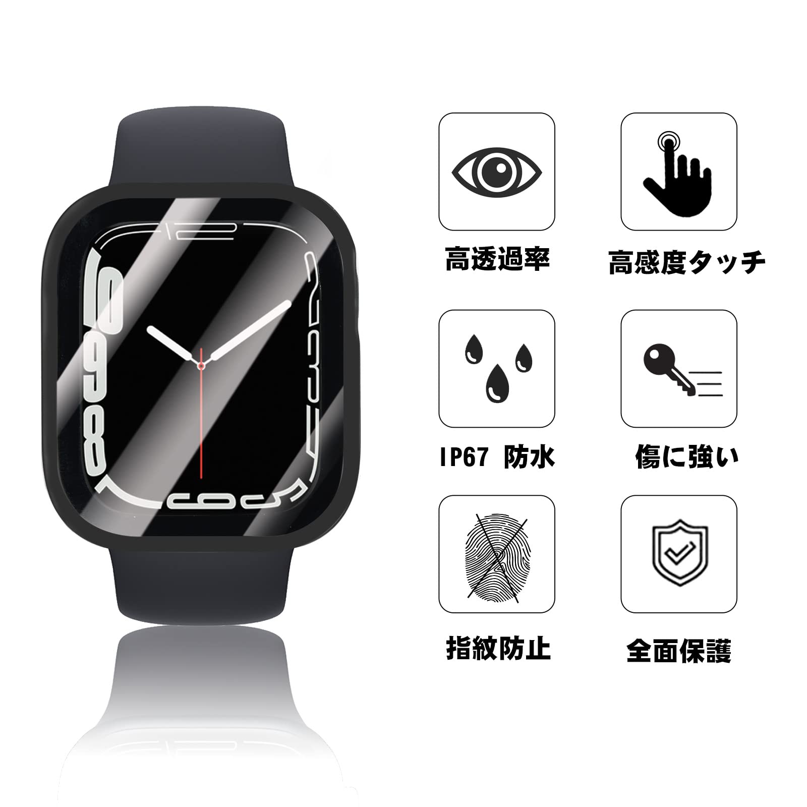 【防水・防塵ケース】シーリングリング内蔵したアップルウォッチ ケース、Apple Watchの画面にぴったりとフィットし、水の浸入を防ぎます。ほこりを完全に防ぎ、ケースを取り外して水を拭くすることを繰り返す必要はありません。疎水性撥油性抜群の強化ガラス表面により、カバー面に水が溜まらず、シャワー、手洗い、発汗、運動、雨など、日常の使用に適しています。 ※ご注意:ウォッチの画面とカバーの間に水が浸入する場合、保護カバーを取り外し、柔らかい布で水を乾かしてください。