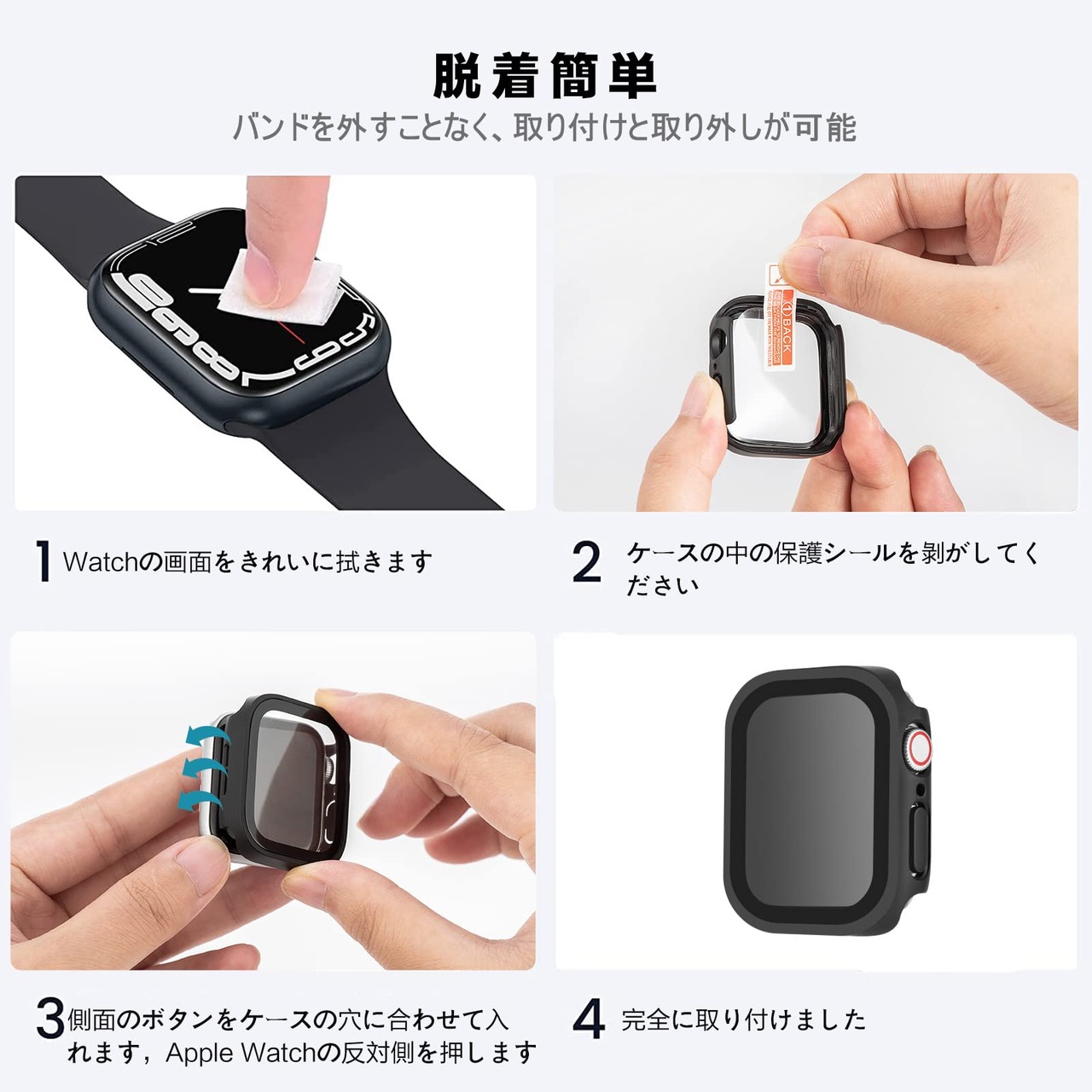 【装着簡単】:簡単に取り付け・取り外すApple Watch カバーです。アップルウォッチのボタンの丸部分の精密穴を通してからウォッチの本体に取り付けます。または逆の手順でケースを取り外れます。このApple Watch ケースを装着してもタッチ操作や充電などを邪魔になく操作できます。