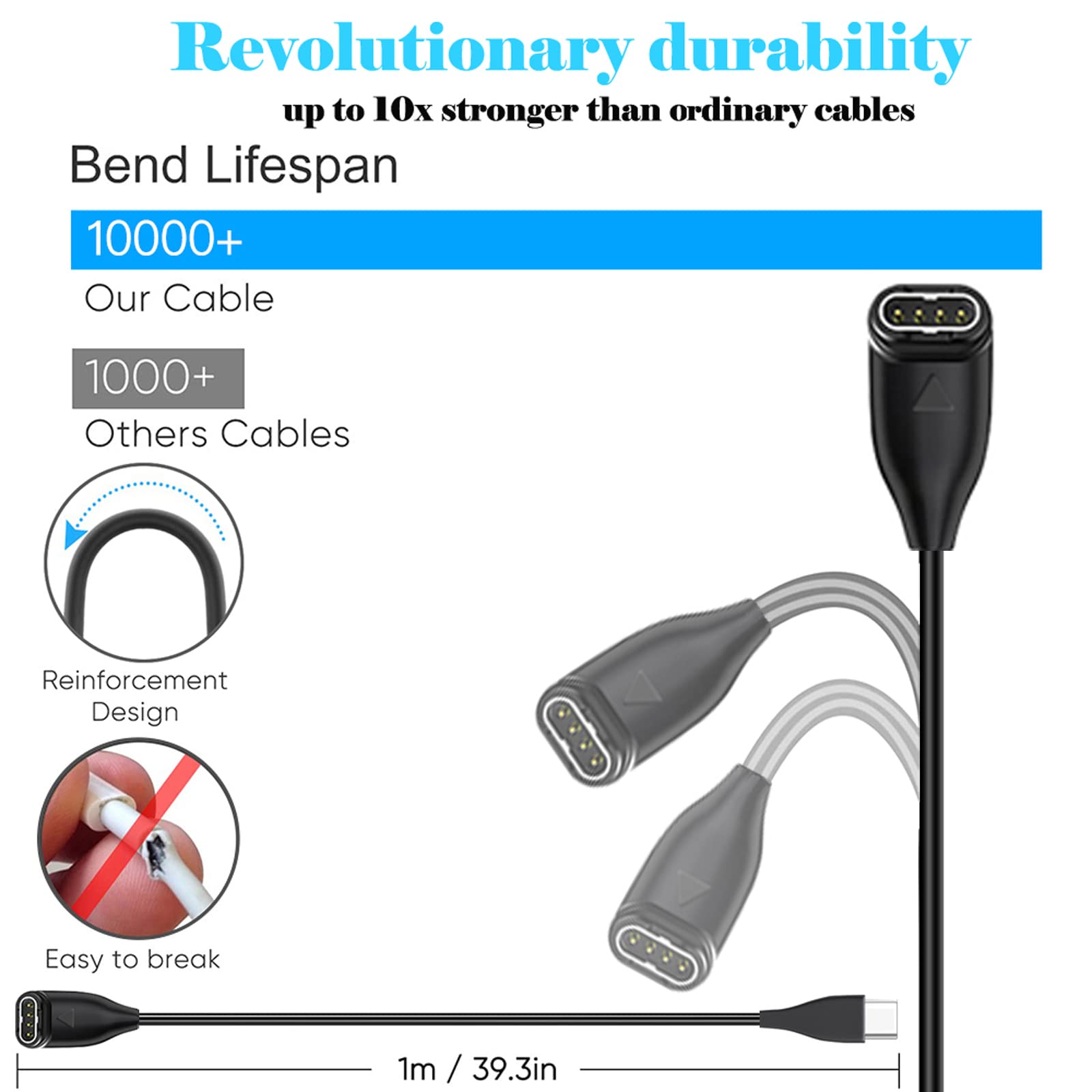 Garmin Fenix 7/7S/7X/6/6S/6X/Pro/5/5S/5X/5X Plus、Forerunner 245/945/5/45/45S/745/935、Aproach S62/S42/S12/S60/S10、Vivoactiveを含む、同じ充電ポートを持つすべてのGarminウォッチと互換性が… 表示を増やす