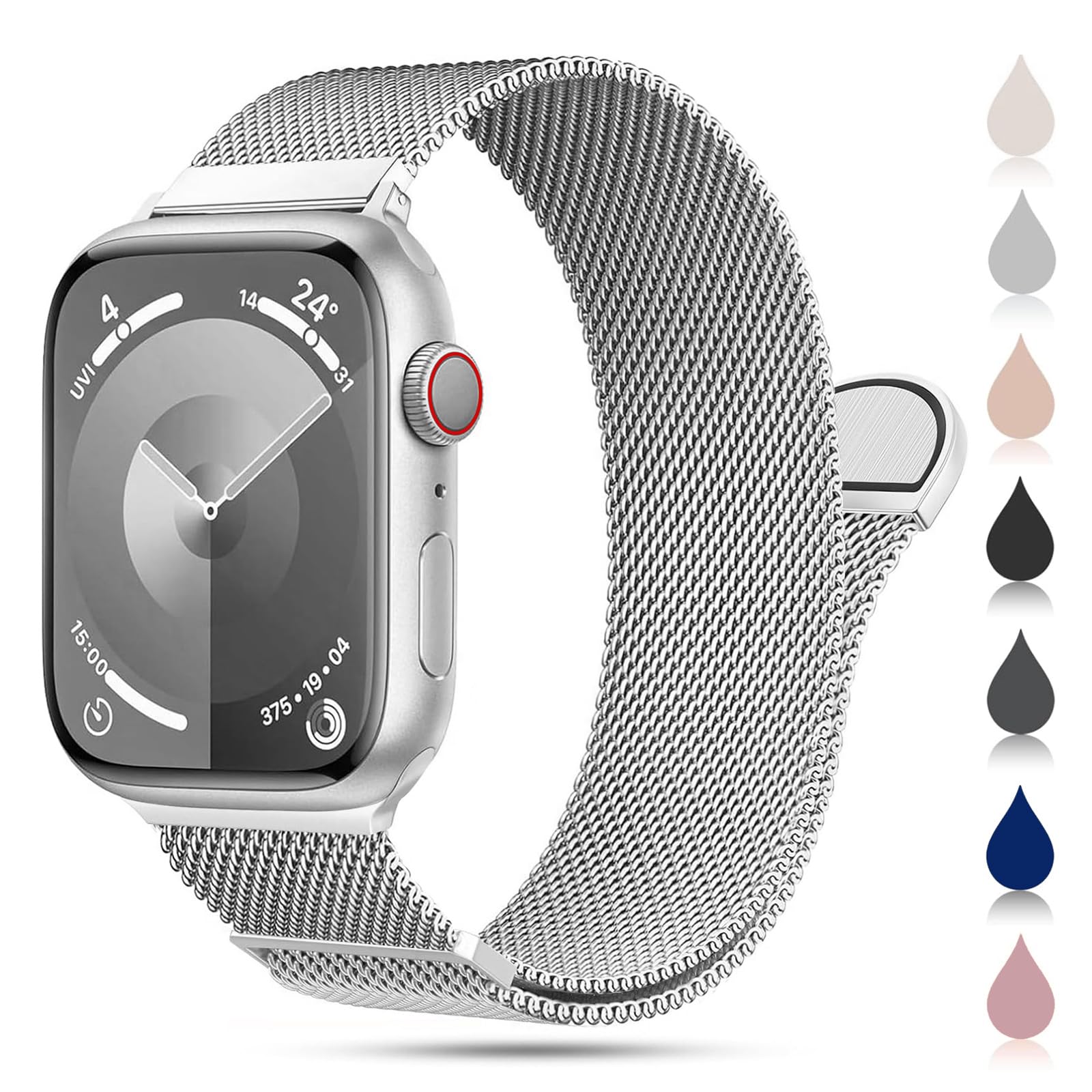 【在庫セール】CAERMA コンパチブル アップルウォッチ バンド 38mm 40mm 41mm 42mm 44mm 45mm 46mm 49mm コンパチブル Apple Watch バンド ステンレス留め金製 男女兼用 長さ調節 強力な磁 通気 メッシュ ベルト コンパチブル Apple Watch Series 10/9/8/7/6/5/4/3/2/1/SE/Ultra 対応(49/46/45/44/42mm(Series 3) シルバー)