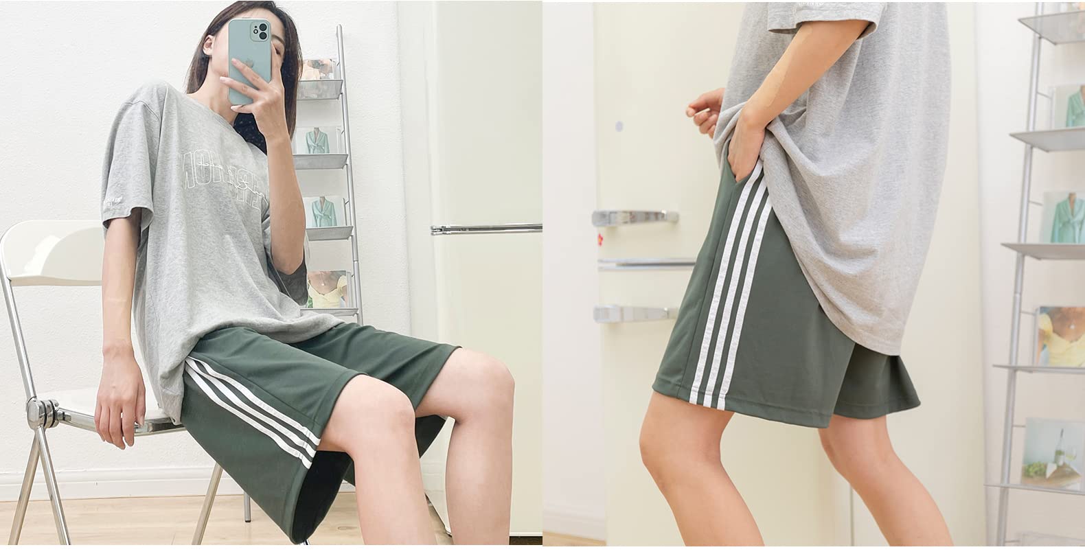 ショートパンツのウエスト部分はストレッチのゴム素材、調節可能な紐も付きので、自分で調整可能、快適性が良くです。おしゃれで実用的なアイテムです。