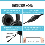 コンパクトに収納できる折りたたみ式で、かばんなどに入れやすく持ち運びにも便利な両耳オーバーヘッドタイプのヘッドセットです。USB Type-C(TM)対応のパソコンやスマートフォン、タブレットはもちろん、付属のUSB-A変換アダプターを使ってUSB-A対応のパソコンでも使用が可能。単一指向性マイクによるノイズキャンセリング性能で、自分の声を通話相手にクリアに届けることができます。外出先でのWeb会議などに便利です。