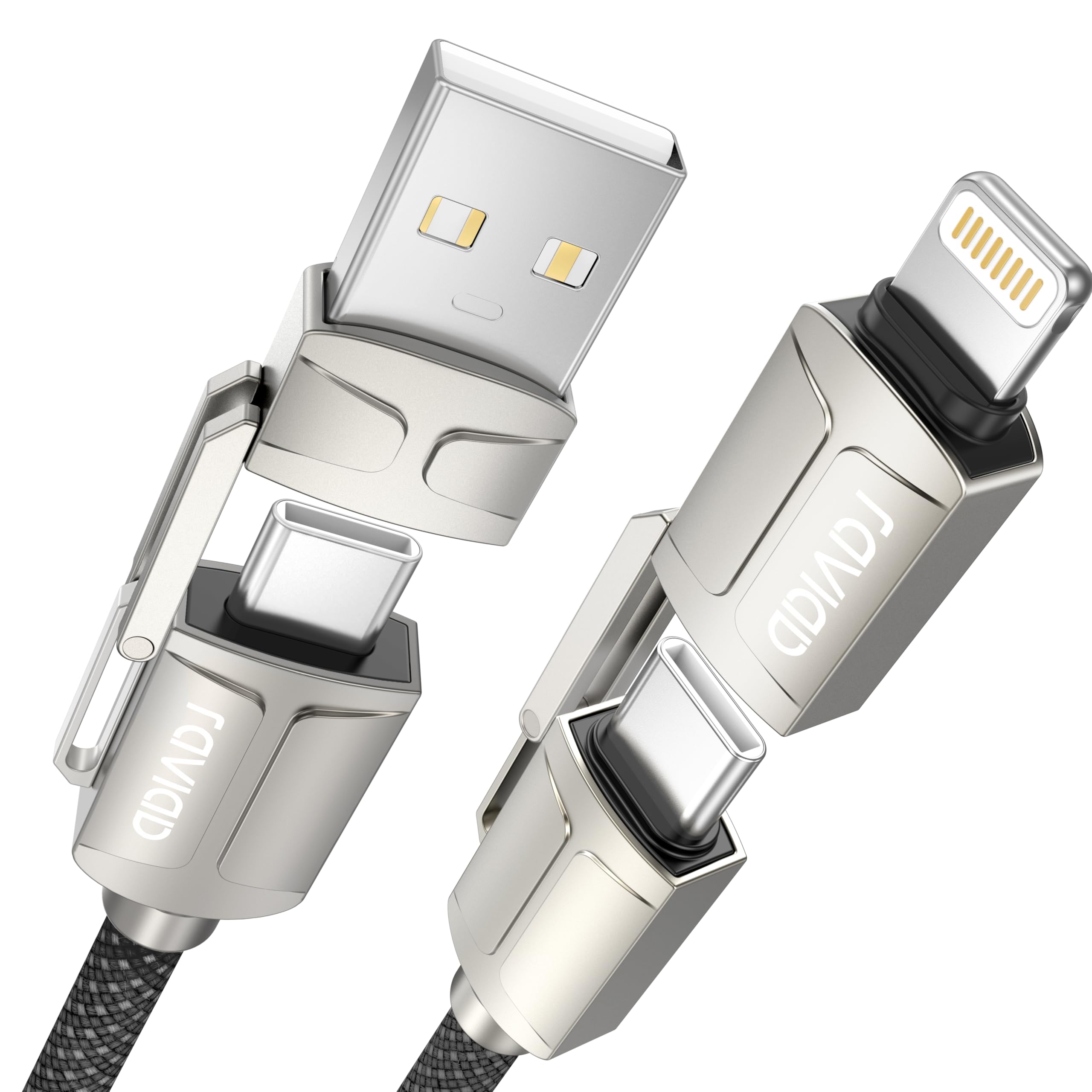 【4in1 充電ケーブル マルチ】RAVIAD usb type c ケーブルは、USB C - USB C 充電器、USB-A - Lightning 充電器、USB-C - Lightning 充電器、USB-A - USB-C 充電器コネクタを使用して複数のデバイスをシームレスに充電および同期し、さまざまなスマートフォン、タブレット、ラップトップをサポートします。自宅での休憩や旅行に最適で、複数のケーブルの乱雑さとお別れを告げます。