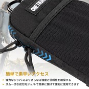 YKK防水ファスナー:滑らかな操作性で引っかかりにくいの特徴があります。また、優れた耐久性と耐衝撃性を備え、大きな引張力にも耐え、変形や破損しにくい設計となっています。