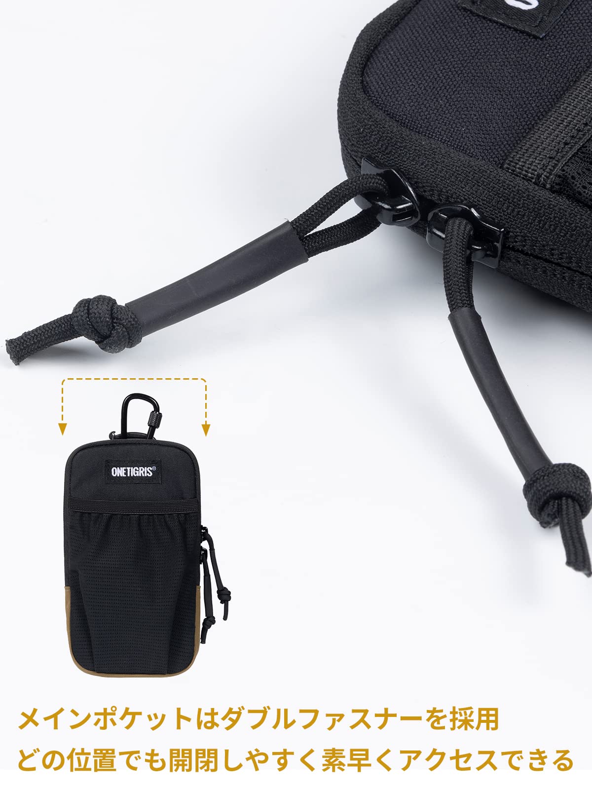 OneTigris スマホポーチ メンズ ベルト リュック 取り付け 携帯ポーチ YKK ファスナー カラビナ moll 付き アウトドア 登山 作業用 iphone 15 14 13 12 plus pro max Sony Galaxy Samsung スマートフォン 対応 黒い