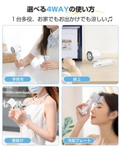【冷感プレートで冷やす!熱中症対策に最適!】本品のファンヘッドに冷却プレートが搭載されていて、蒸し暑い真夏には冷却プレートで火照った肌を瞬間に冷やして、体感温度を下げて、氷のような冷たさを感じて心地よくなります。ファンが回っている状態で電源ボタンを長押しすれば冷感機能を起動できます。再度長押しすれば冷感がオフになります。
