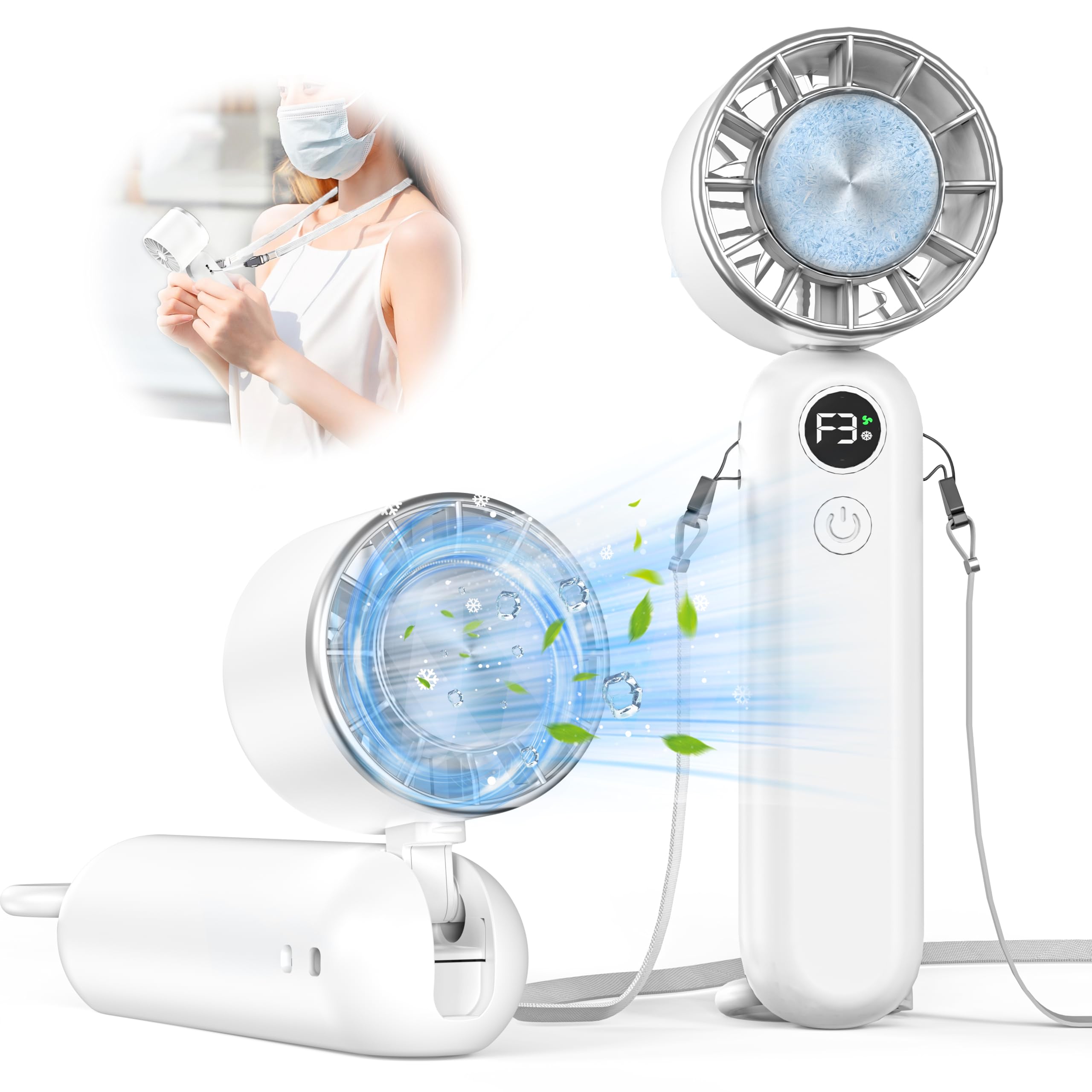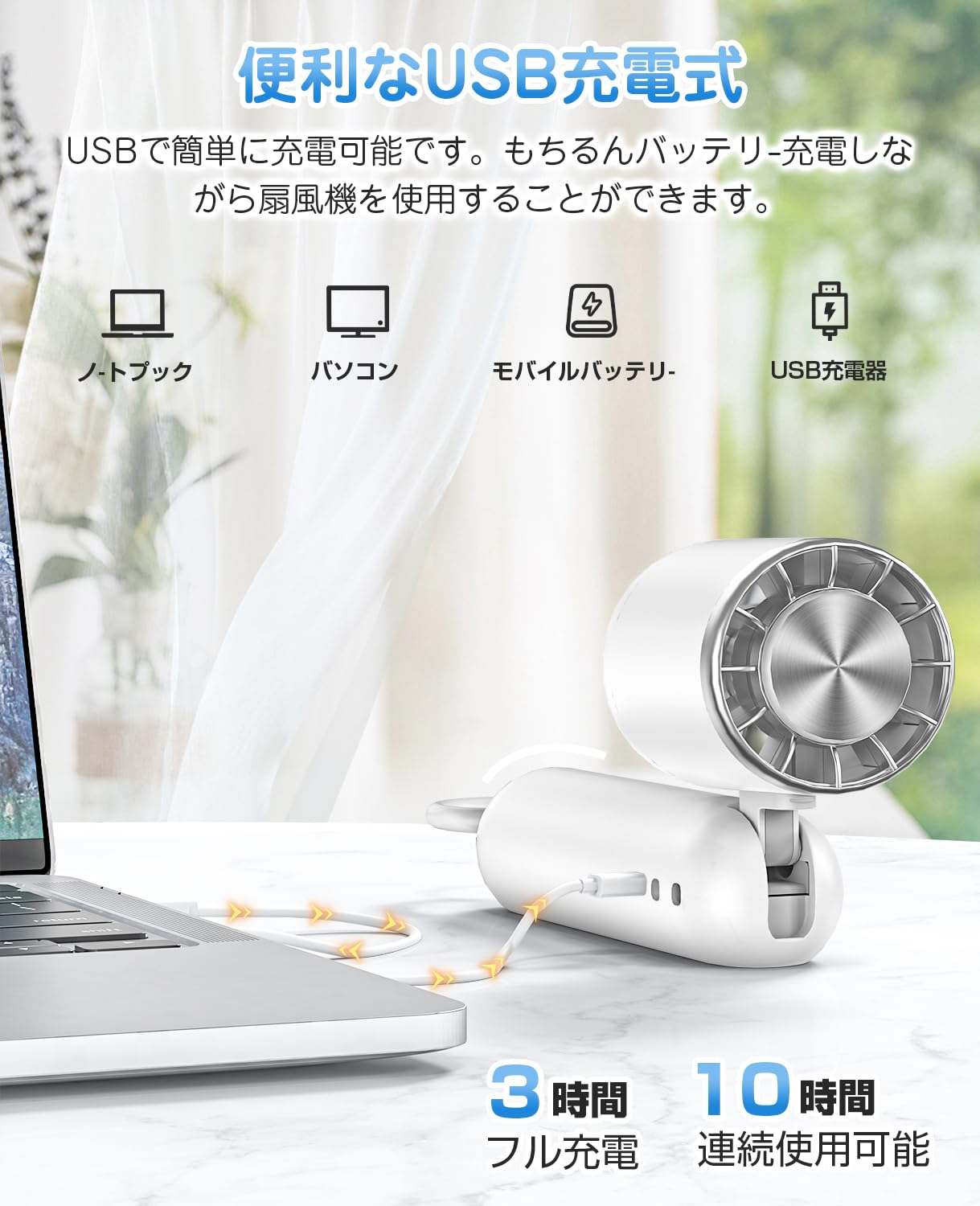 【在庫セール】ハンディファン 冷却プレート付き 携帯扇風機 冷感 手持ち扇風機 ミニファン 長時間稼働 3段階風力調節 USB充電式 熱中症対策 小型 軽量 卓上 首掛け ストラップ付属 金属カラビナ付き ホワイト | nico3588