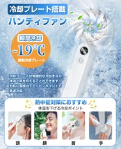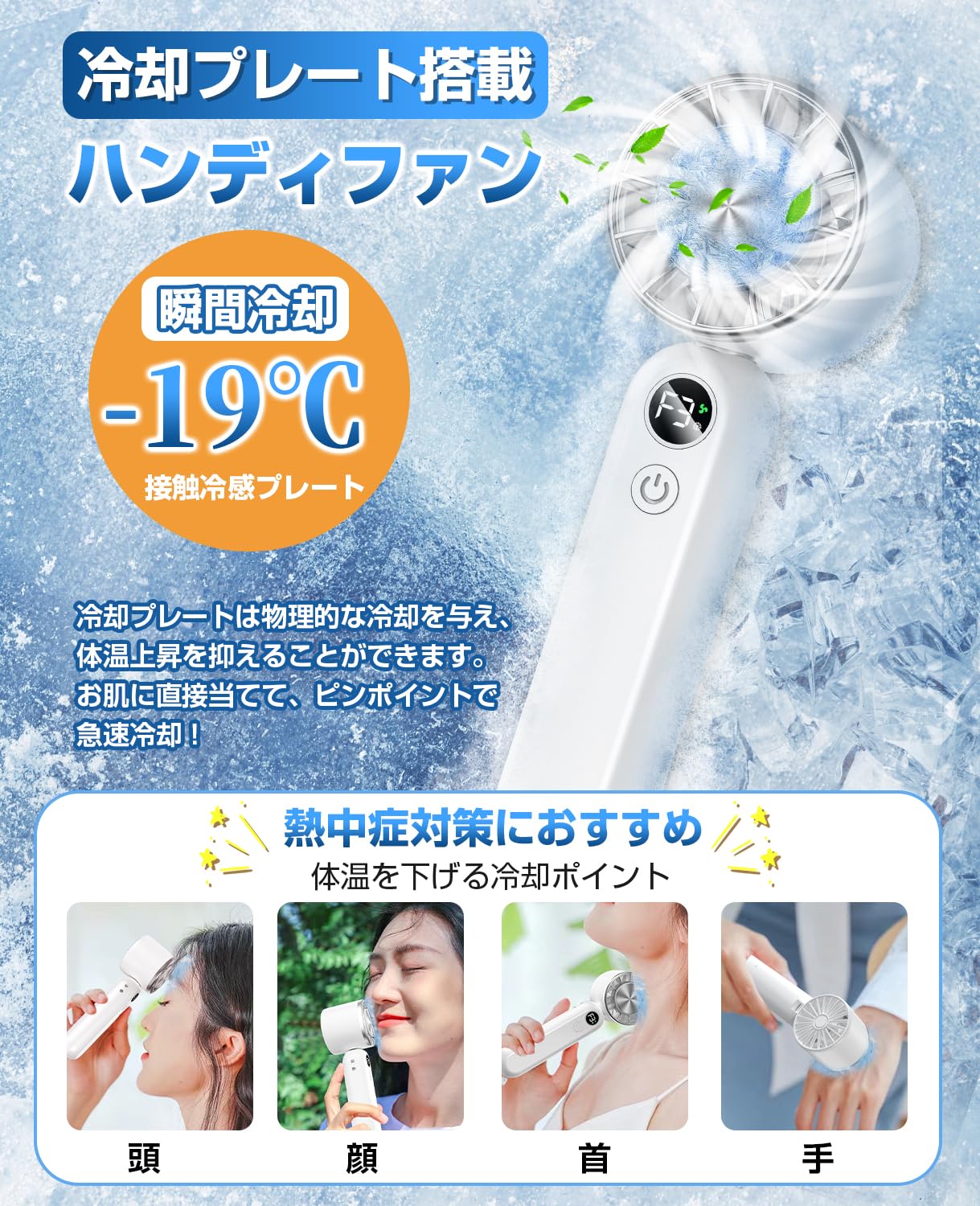 ハンディファン 冷却プレート付き 携帯扇風機 冷感 手持ち扇風機 ミニファン 長時間稼働 3段階風力調節 USB充電式 熱中症対策 小型 軽量 卓上 首掛け ストラップ付属 金属カラビナ付き ホワイト