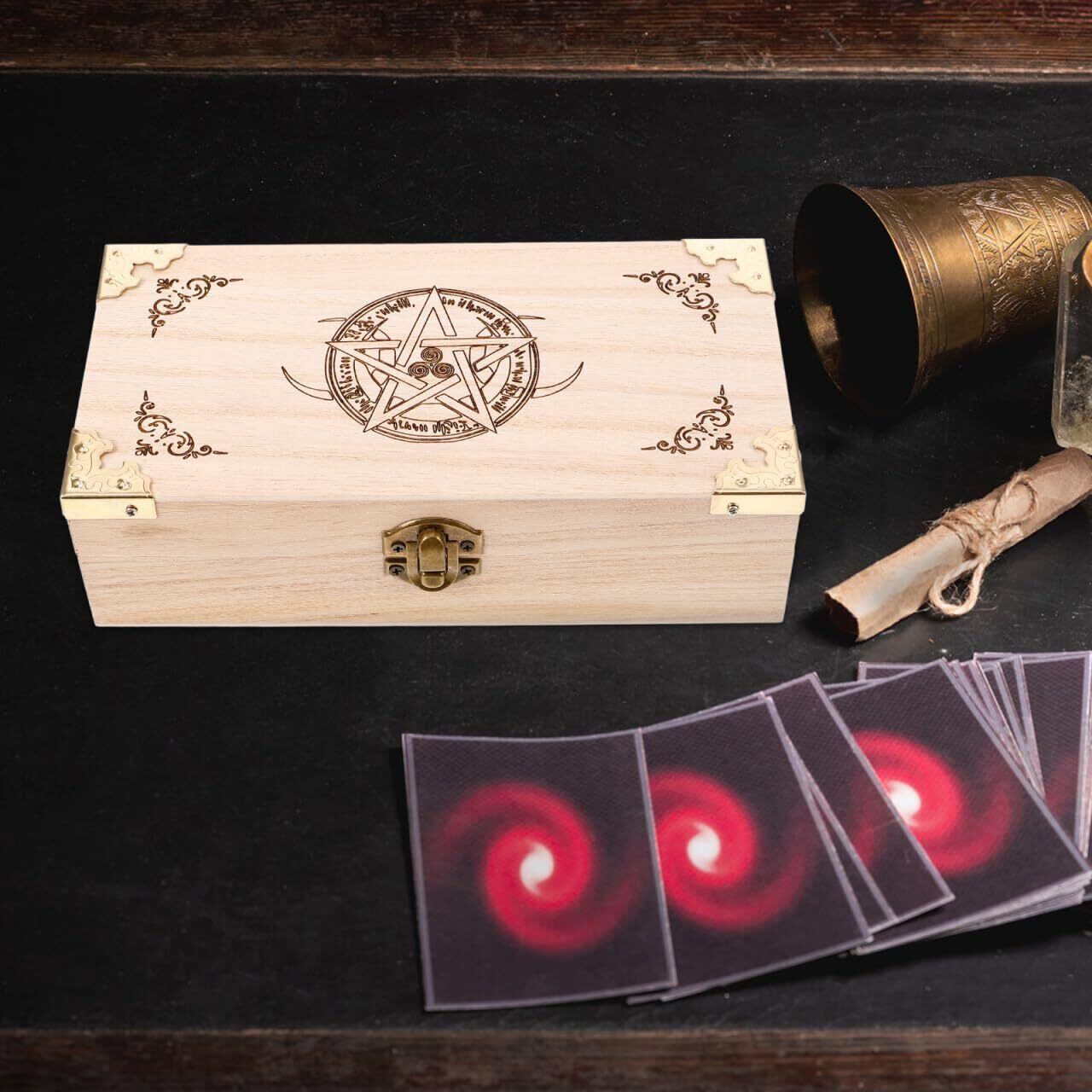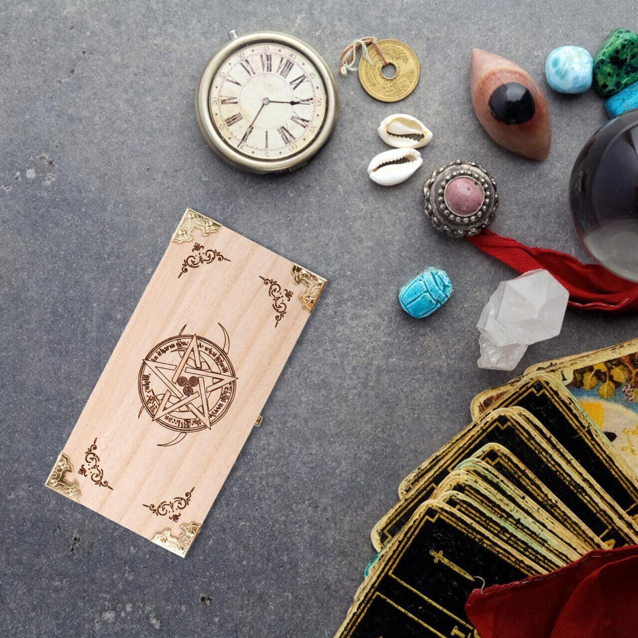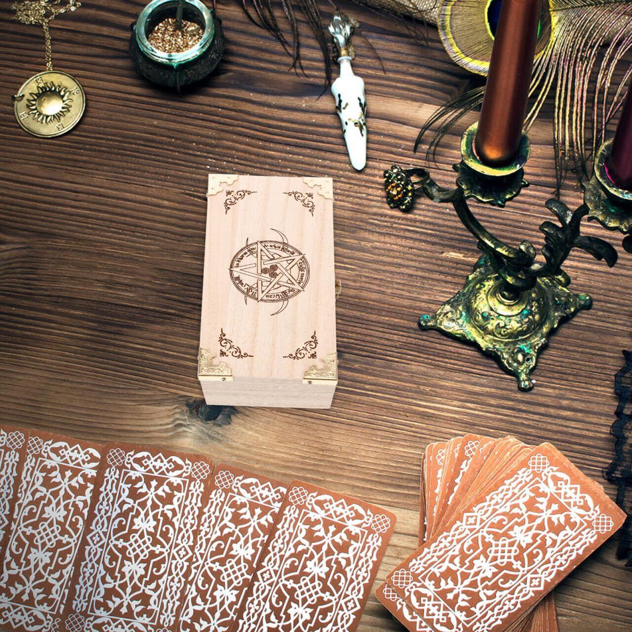 ERINGOGO 木製タロットボックス 大容量 五芒星デザイン カード収納 おしゃれ アクセサリー タロット 愛好者向け