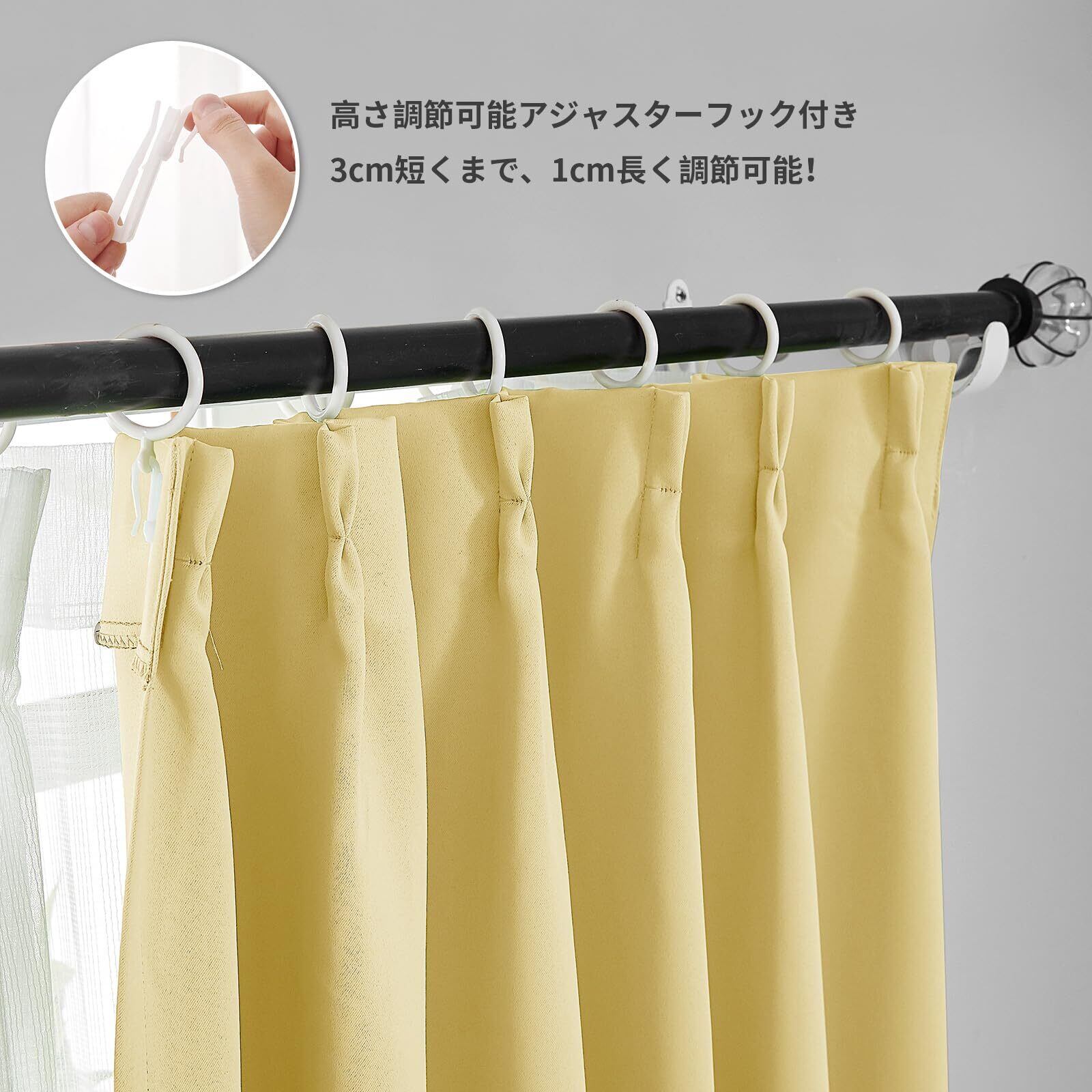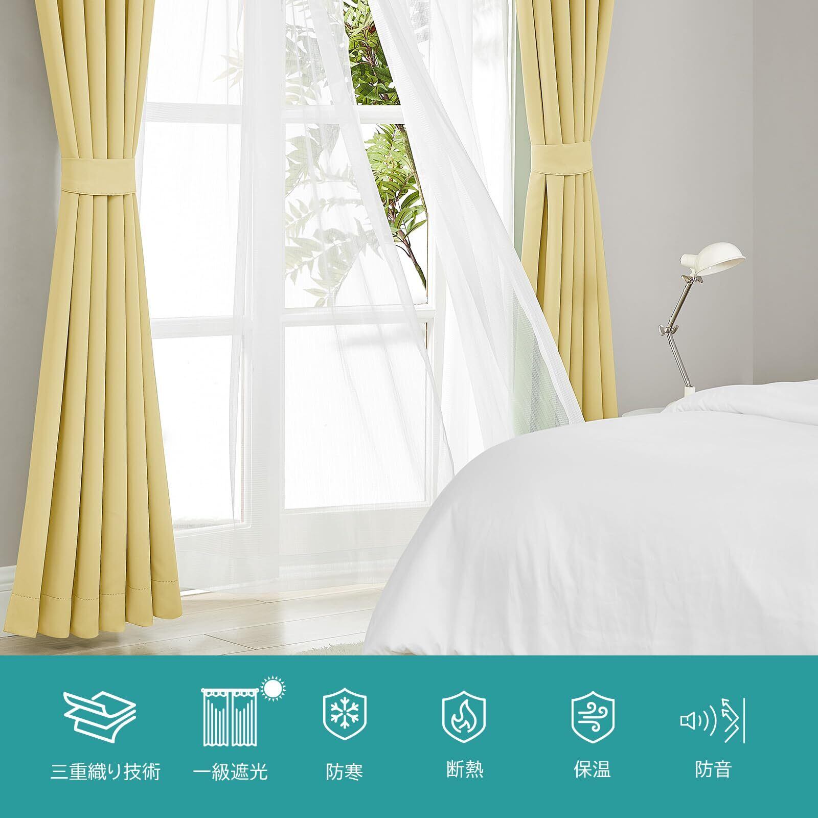 【数量限定】Hansleep カーテン 1級遮光 4枚組 イェロー 幅100cm×丈178cm 黄色 UVカット 断熱 防寒 防音 省エネ 厚手 無地 おしゃれ カーテンセット 洗える 寝室 リビング用 (ドレープカーテン2枚・レースカーテン2枚)