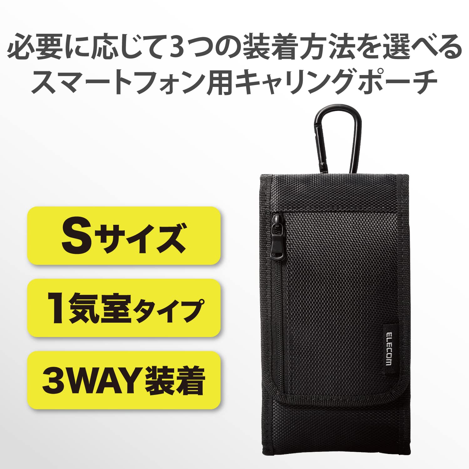 エレコム スマホポーチ 1台収納 Sサイズ 3Way (腰ベルトループ ショルダーベルトループ カラビナフック) フロントポケット付 カードポケット付 ブラック 【iPhone 16 / 16e シリーズ 対応検証済】 P-04CCBK