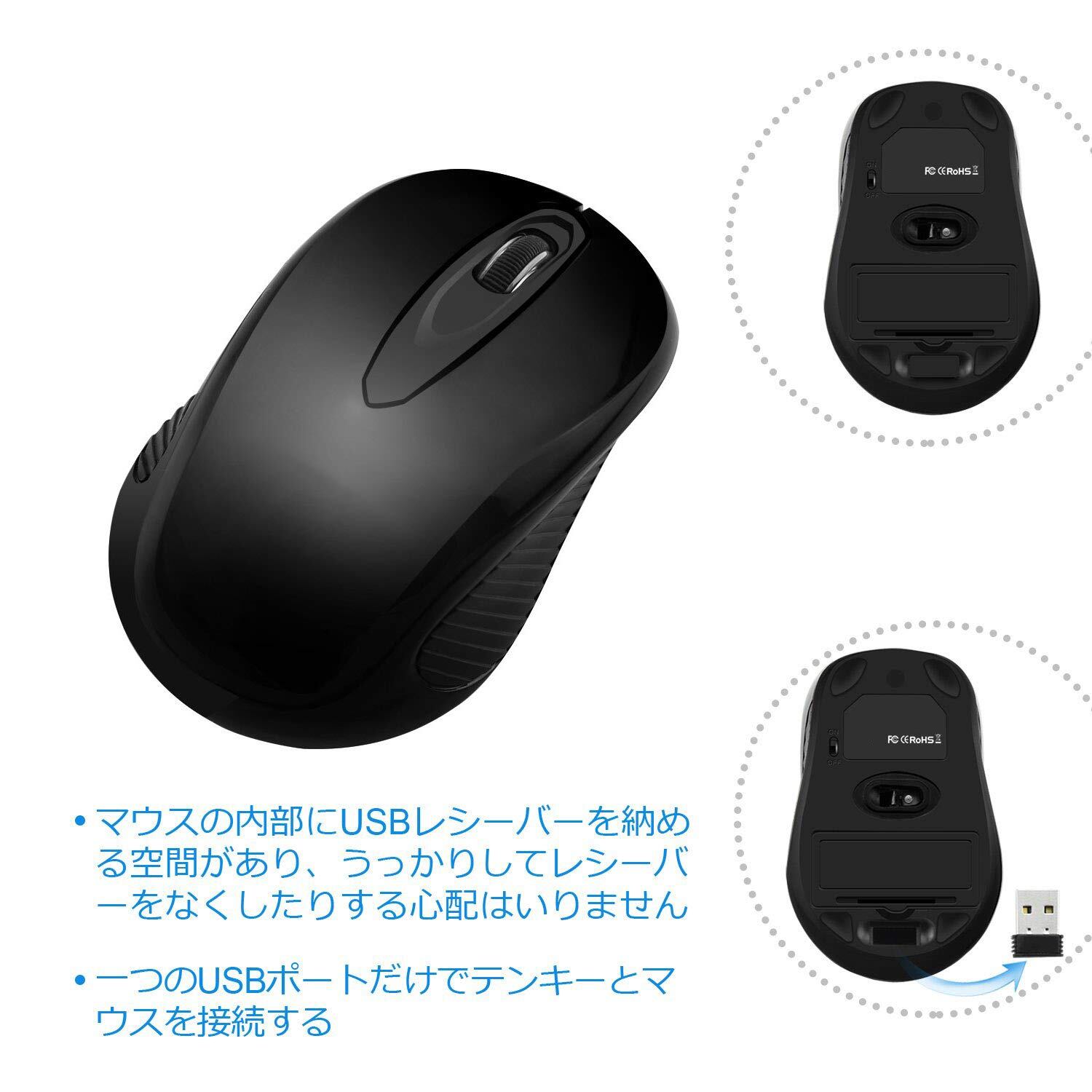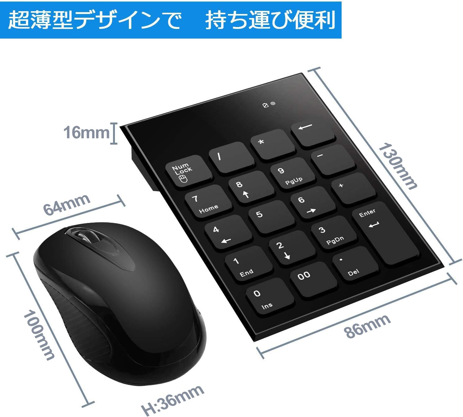 【使いやすい】2.4 GHz無線技術を使用し、プラグアンドプレイ、デバイスドライバ不要、高速データ転送、ほとんど遅延やドロップアウトなし、最大10Mの動作範囲。 「番号パッドとマウスを接続するための1つのUSBポート、USBレシーバーを格納するスペースがあるマウス]