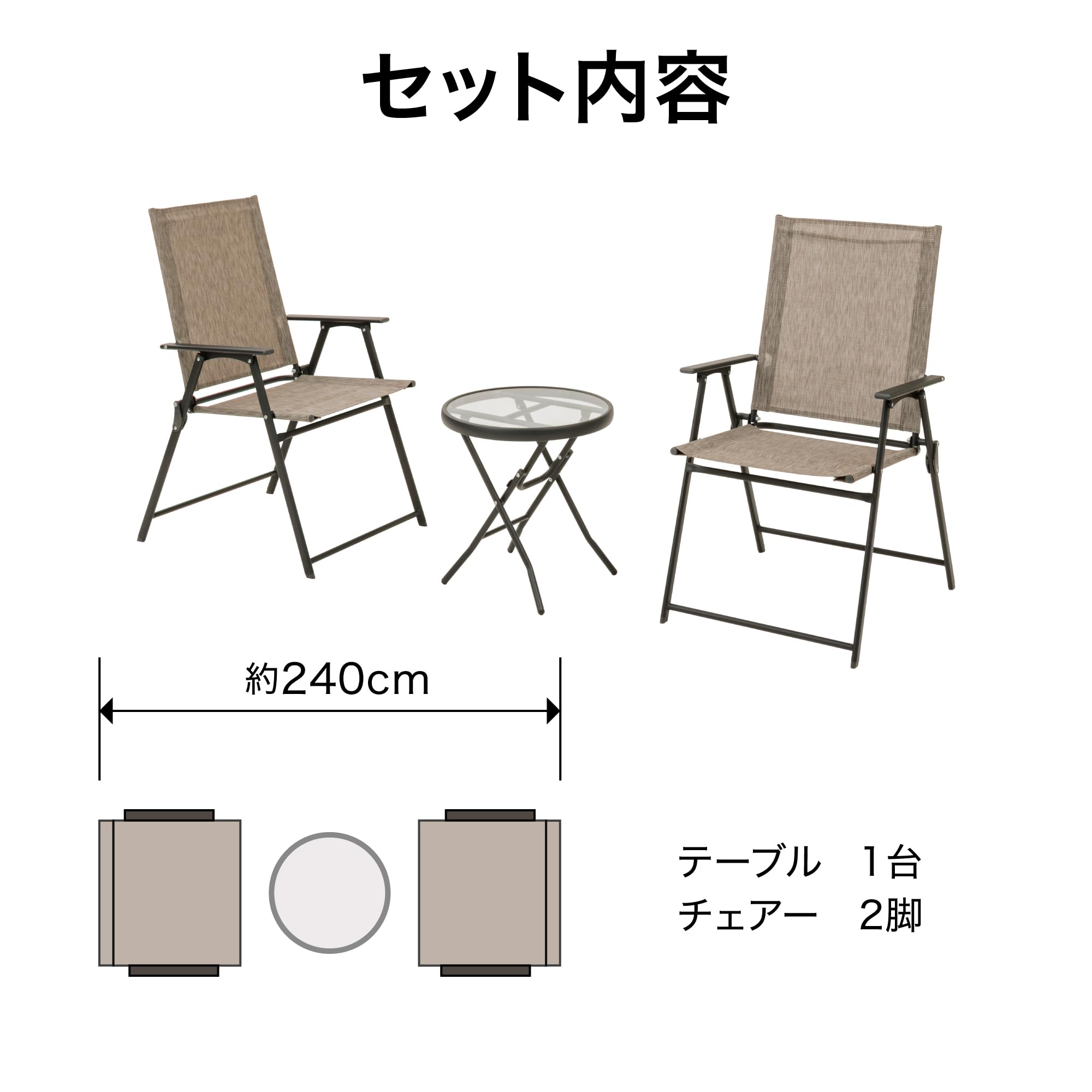 サイズ:テーブル:約幅46cm×奥行46cm×高さ48cm、チェアー:約幅57cm×奥行65.5cm×高さ96cm