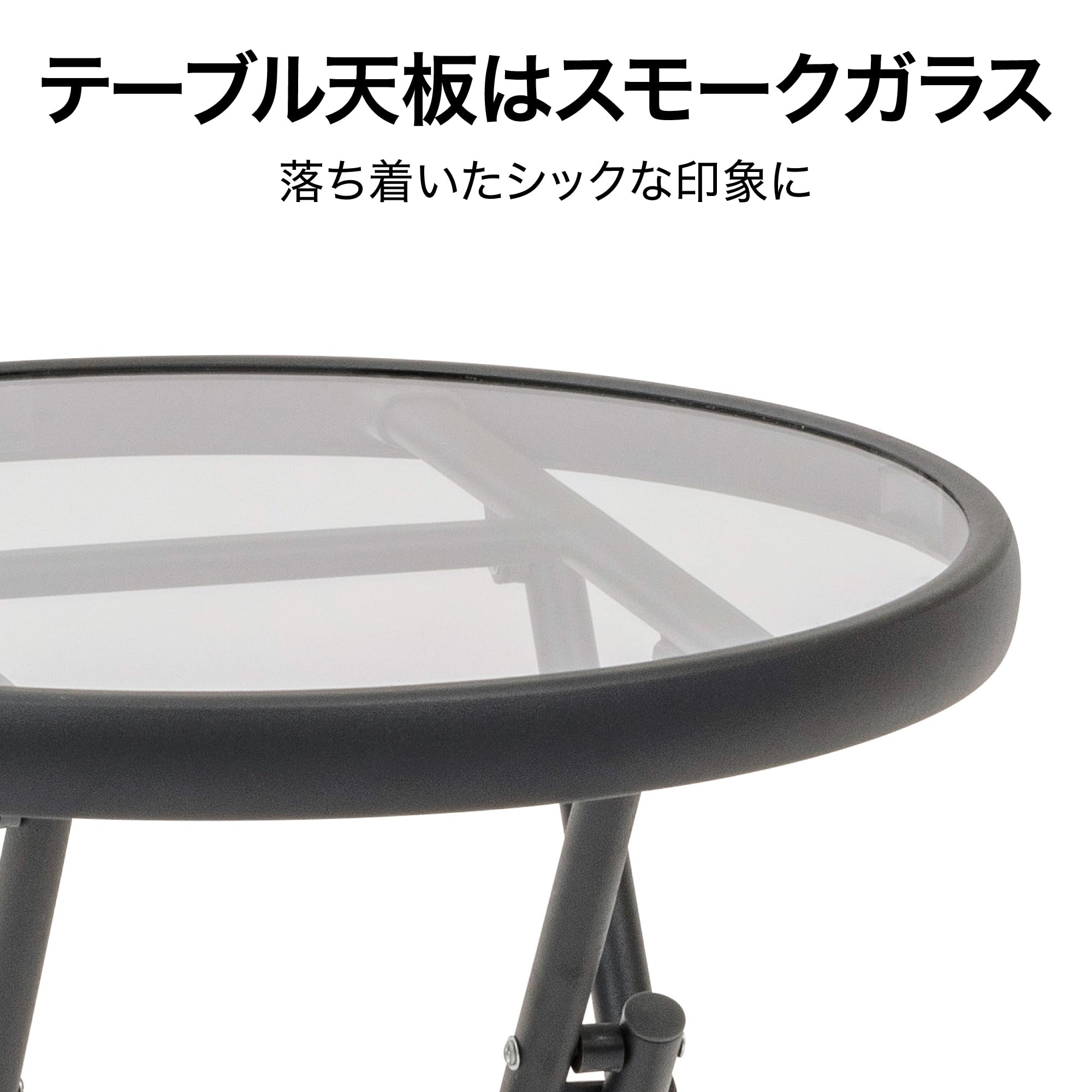 タカショー ガーデンファニチャーセット フレスコ テーブル&チェアー 3点セット グレー 屋外 ベランダ シックな雰囲気 スチール ガラス 樹脂 MSF-39S