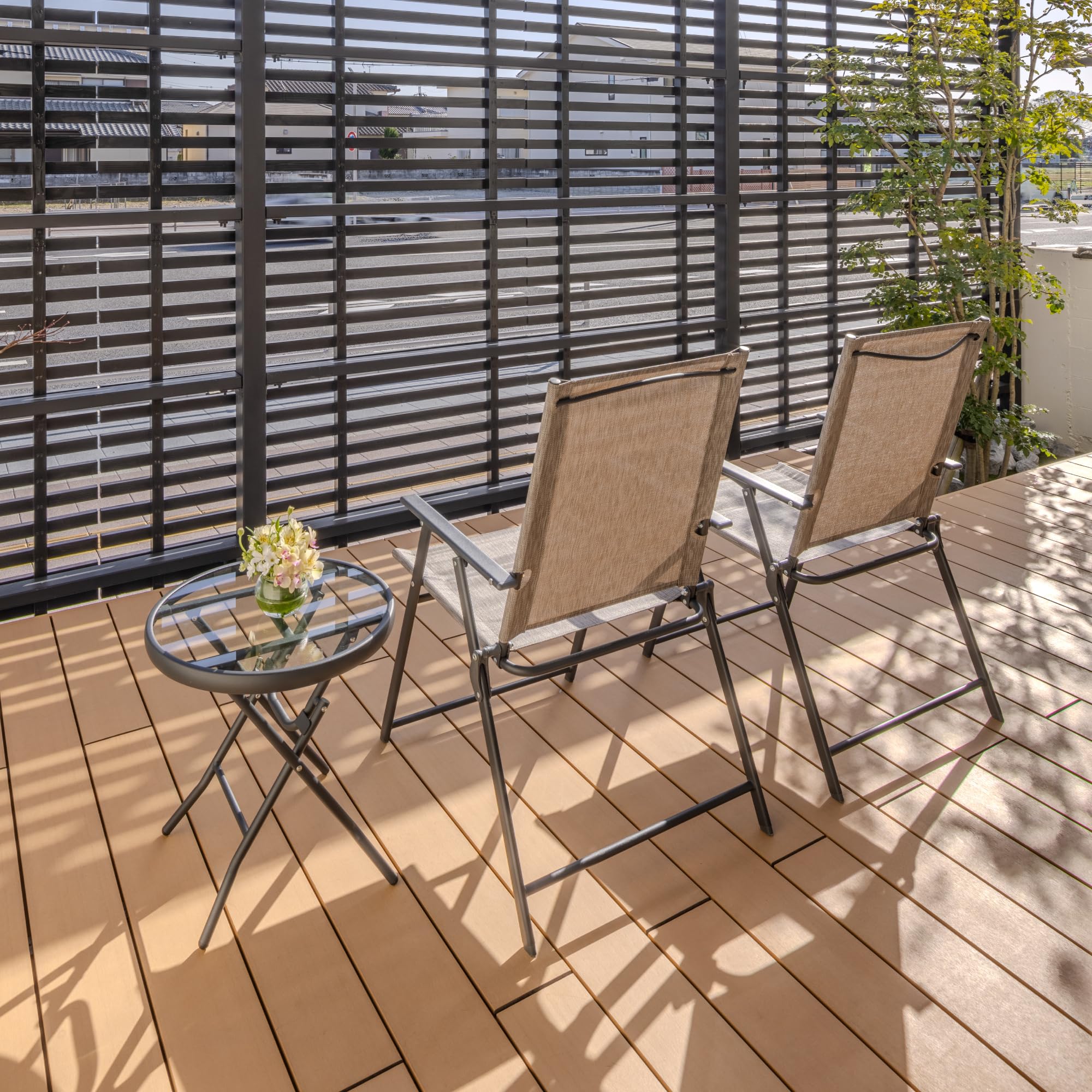 コンパクトサイズなので、お庭だけでなくベランダなどの限られたスペースにも。折りたたみ可能で、使用しないときは折りたたんで収納できます。