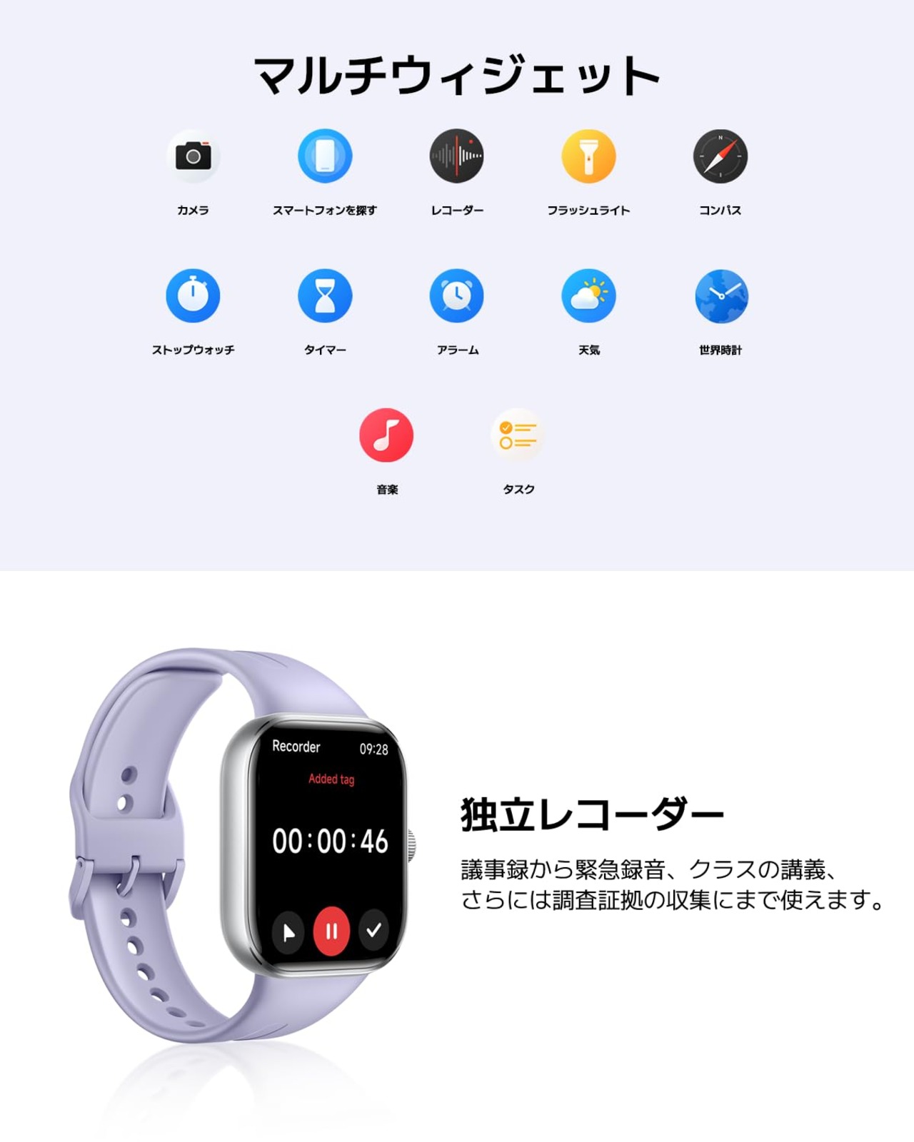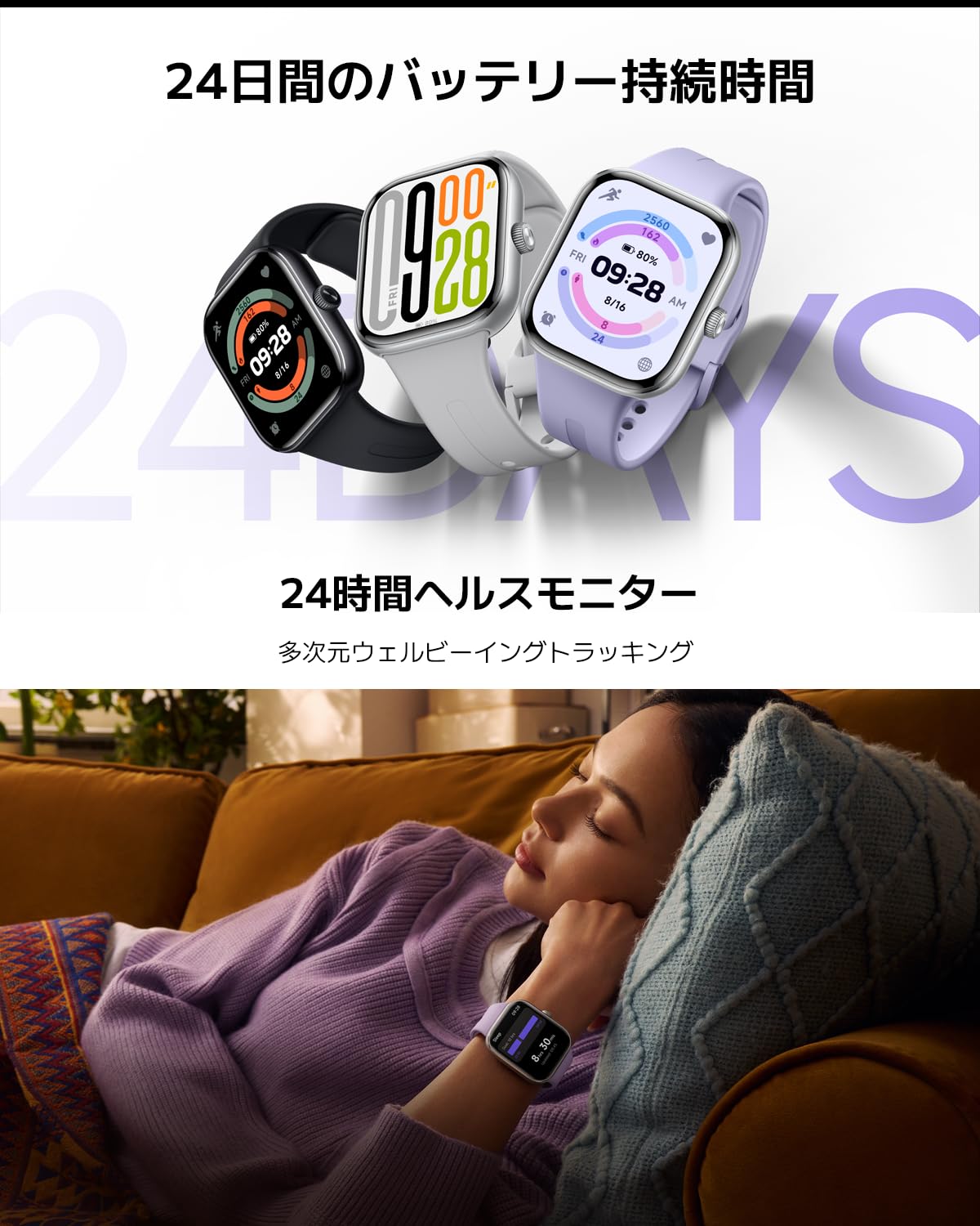 シャオミ(Xiaomi) スマートウォッチ Redmi Watch 5 2.07インチ有機EL 24日間連続稼働 Bluetooth 通話対応 GPS内蔵 24時間ヘルスモニタリング ベゼルレスディスプレイデザイン ラベンダーパープル