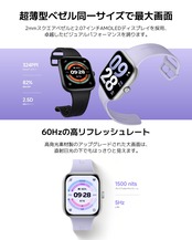 【Redmi Watch史上最大の2.07インチベゼルレスディスプレイ】前モデルから製品サイズを変えずベゼルを狭くすることで2.07インチ大画面を実現しました。さらに最大1500nits(High Brightness Mode時)の輝度と60Hzのリフレッシュレート、324ppiのカラフルなディルプレイにより視認性を大きく改善します。