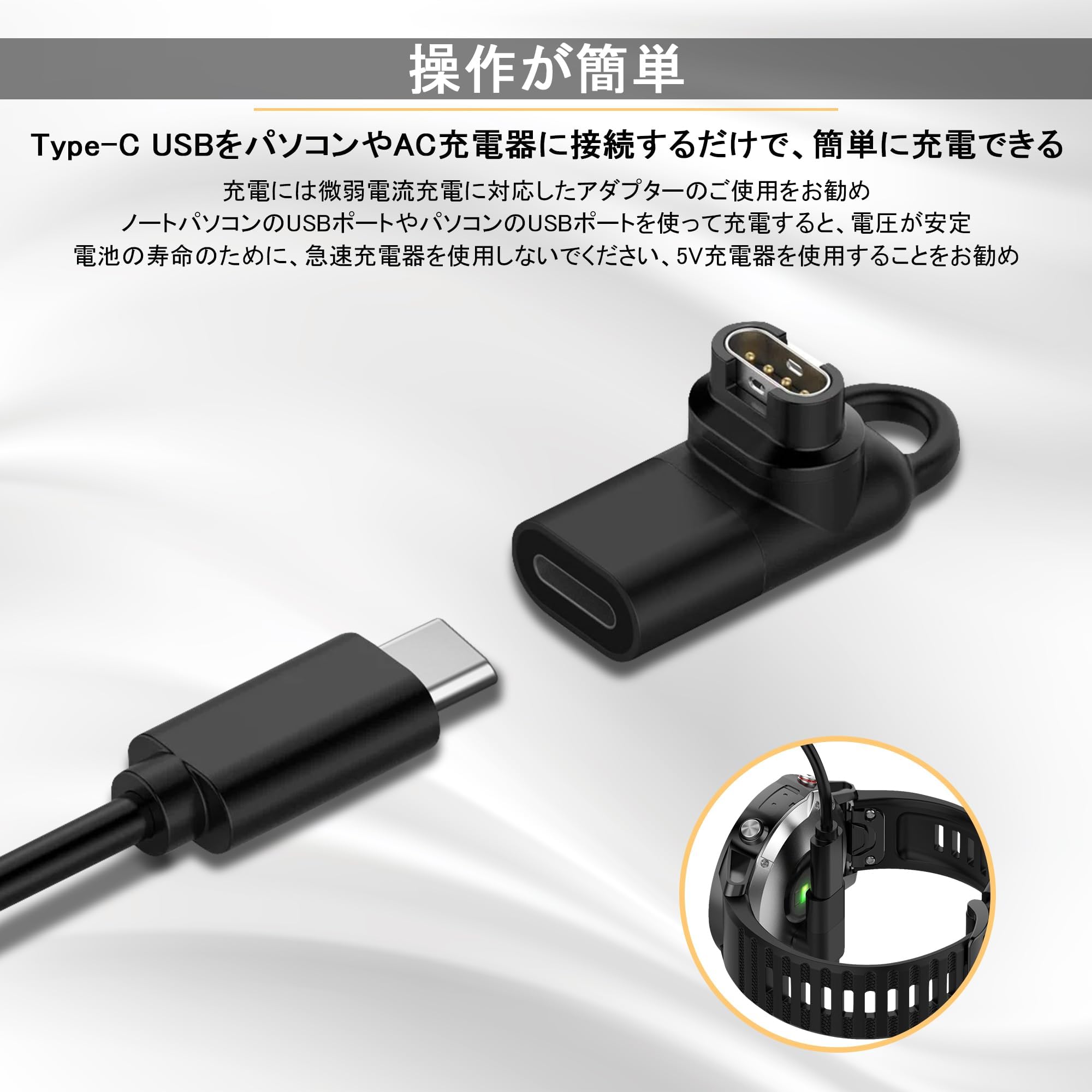 【便利性&防護性】新発売のガーミン専用変換アダプター、Type-C充電器しかないの場合は、変換アダプターを組み合わせてガーミン充電ケーブルになりガーミン時計を簡単に充電できます。防塵プラグは端子に汗の侵入を防ぎ、日常生活のほこりなどからgarminモデルの端子をしっかり守れます。