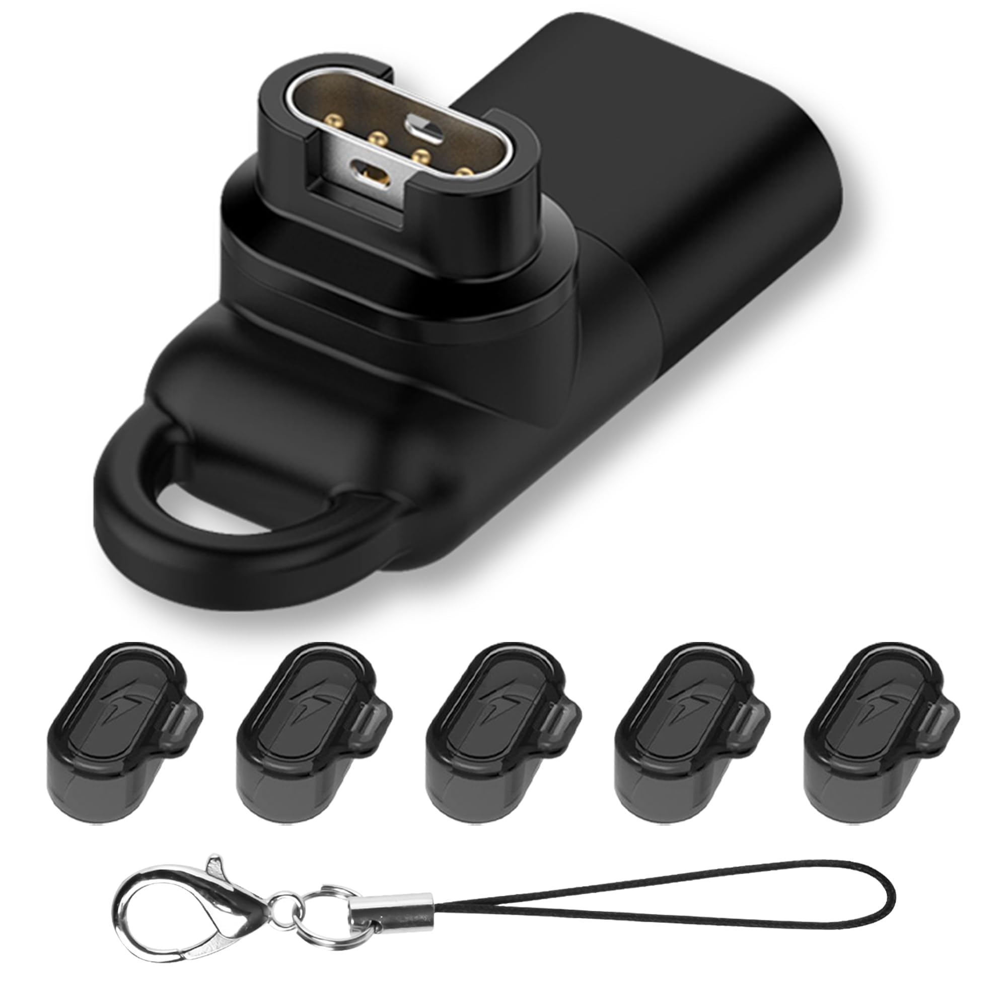 Seltureone【1+5セット】Garmin(ガーミン)用変換アダプター(1個)L型 Type-Cケーブル対応 + 防塵プラグ 充電ポート用(5個)TPU素材 Garmin変換マイクロ ガーミン充電ケーブル Forerunner570/970/vivoactive6/5/Approach s50/s44/s70/Instinct 3/Venuシリーズ/Fenixシリーズなど汎用(ブラック)