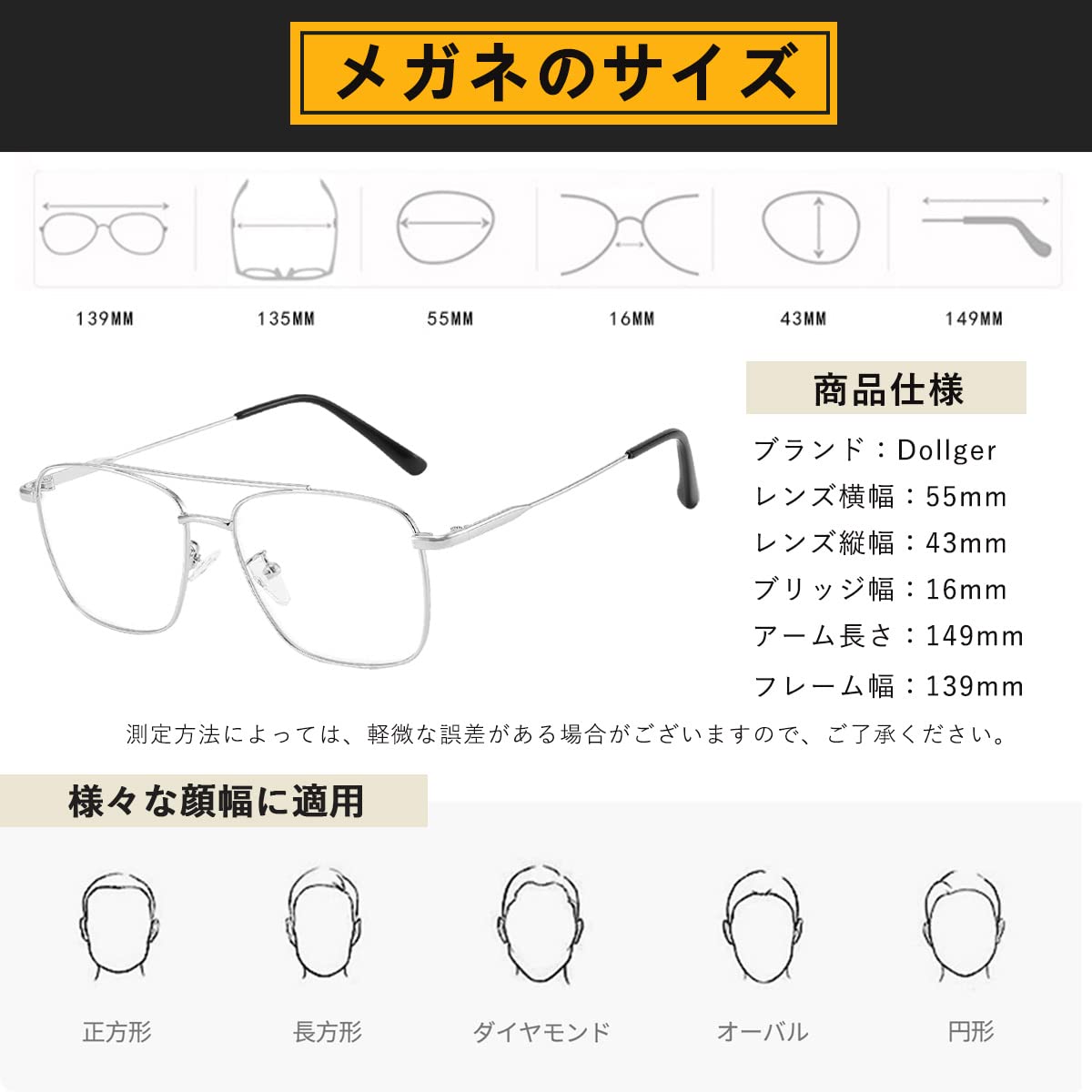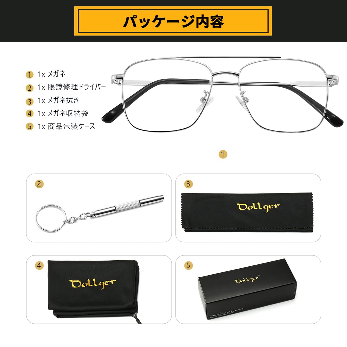【2022最新】[Dollger] 伊達メガネ ファッションメガネ 度なし 軽量 UVカット 紫外線カット スクエアメガネ 眼鏡 透明レンズ 金属フレーム 小顔効果 レトロスタイル おしゃれ レディース メンズ