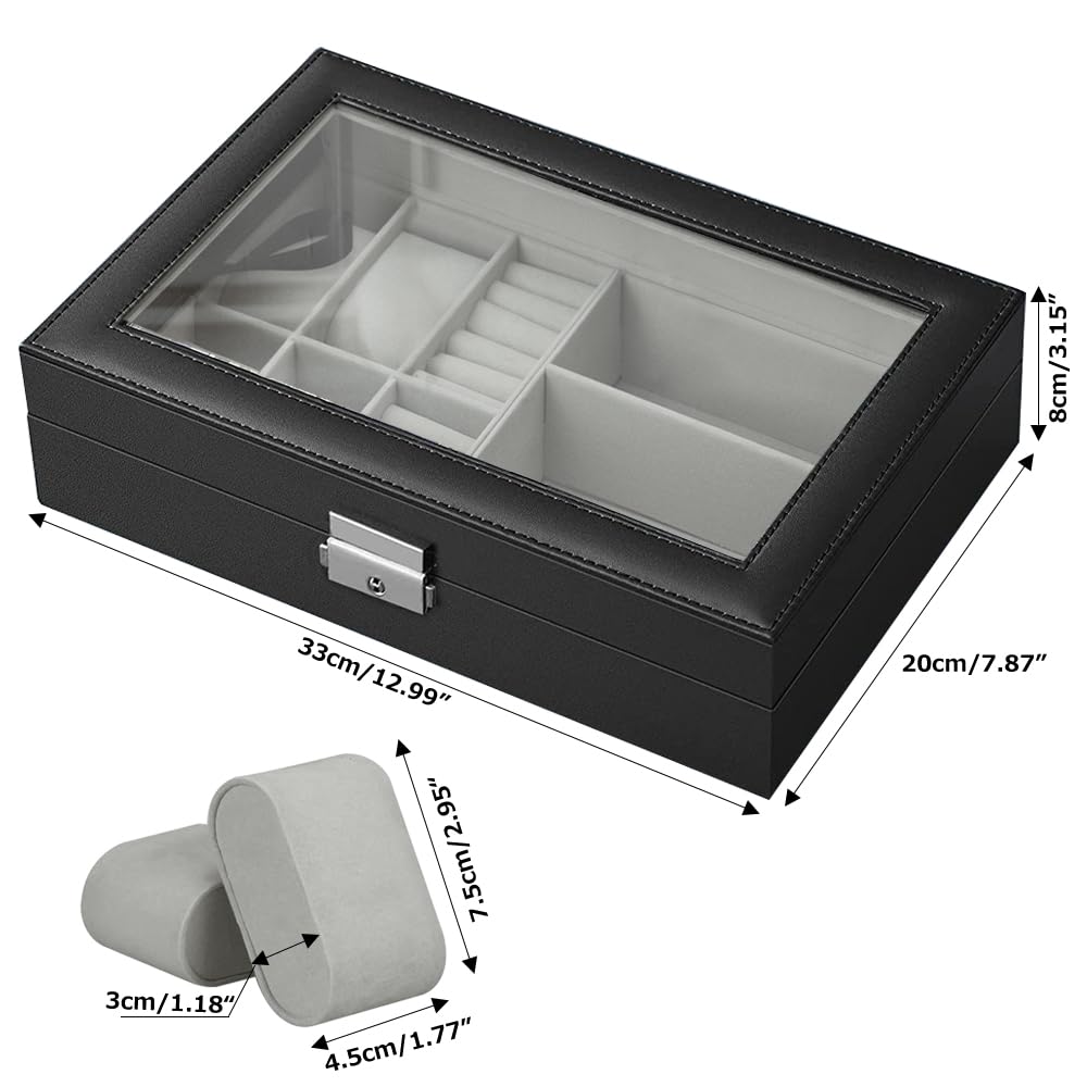 【サイズ】20奥行き x 33幅 x 8高さ cm、この腕時計ケースの蓋は高級感があふれています。※すべての時計に対応してはいませんので、発注前、必ずサイズをご確認いただきます。