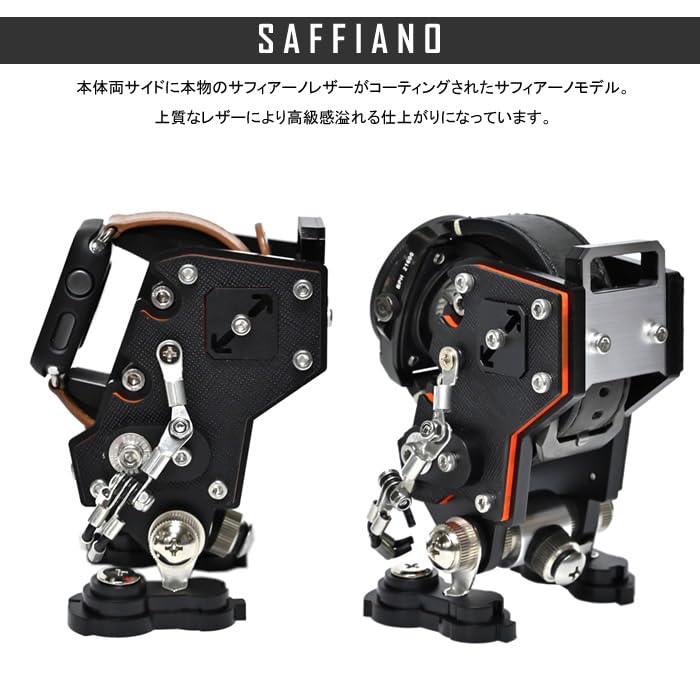 アップルウォッチがロボットに変身!一瞬で心を奪うインテリアウォッチスタンド。本体両サイドに本物のサフィアーノレザーがコーティングされたサフィアーノモデル。上質なレザーにより高級感溢れる仕上がりになっています。大人気ロボット型ウォッチスタンド「ROBOTOYS」がアップルウォッチ対応になって新登場!近未来ロボットを彷彿とさせる魅力的なデザインはそのままに、アップルウォッチを装着しながら充電できるようホルダーを改良!充電中も部屋のインテリアとして大きな存在感を放ちます!このウォッチスタンドに腕時計を飾れば、一気にお洒落なインテリアに変身します。もちろん普通の腕時計も装着可能です。