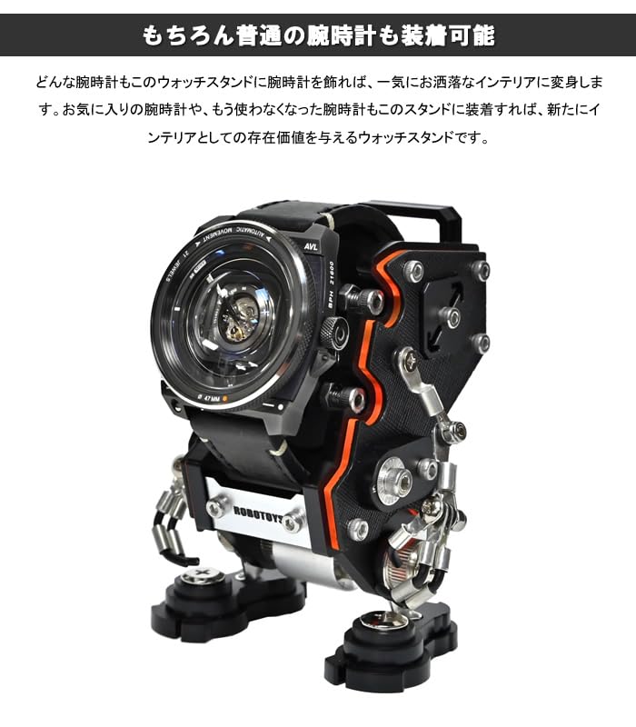 【2022最新】ROBOTOYS ロボット型ウォッチスタンド 腕時計スタンド アップルウォッチ対応 サフィアーノ ブラック ASW-01-SF-BK