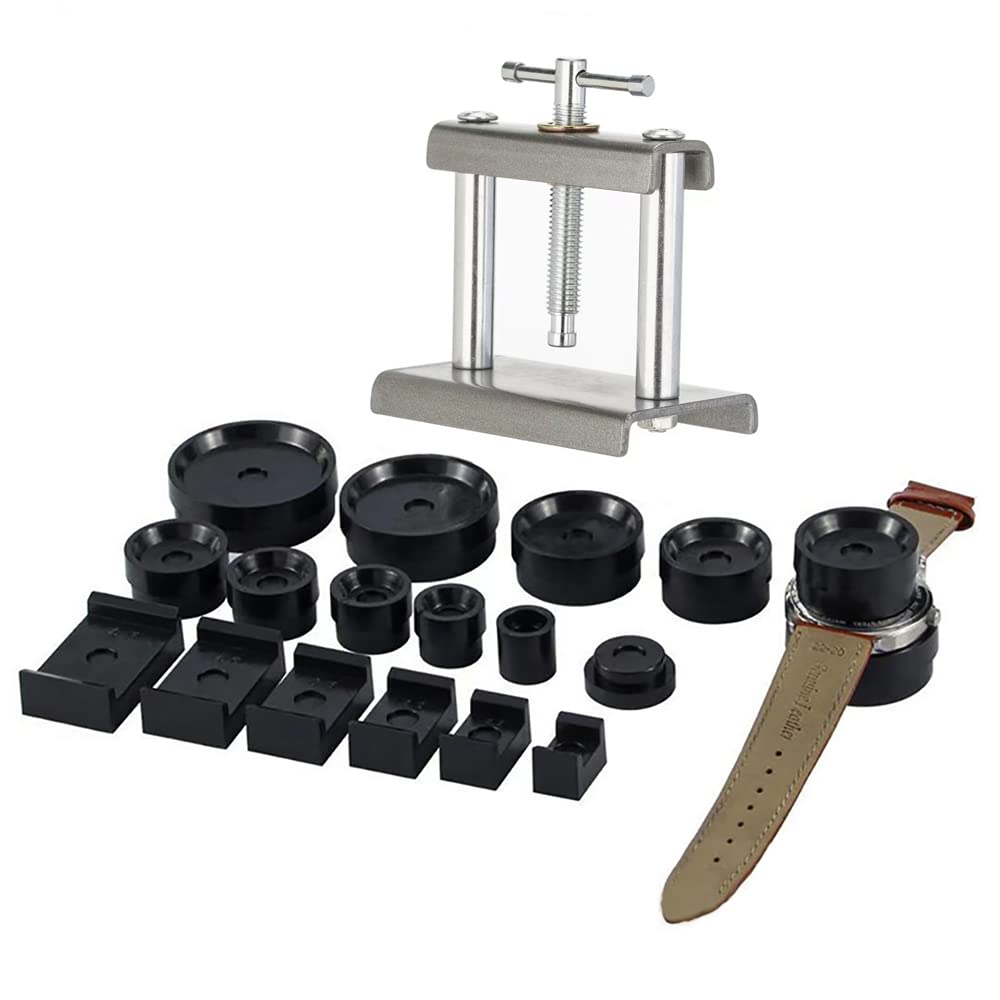 TICFROG 腕時計工具 時計閉め器 時計裏蓋閉め器 裏蓋 ガラス 閉め 電池交換 時計の修理 裏蓋外し コマセット メンテナンス 腕時計用工具 ステンレス素材、強い耐久性 18種類のサイズのアダプター