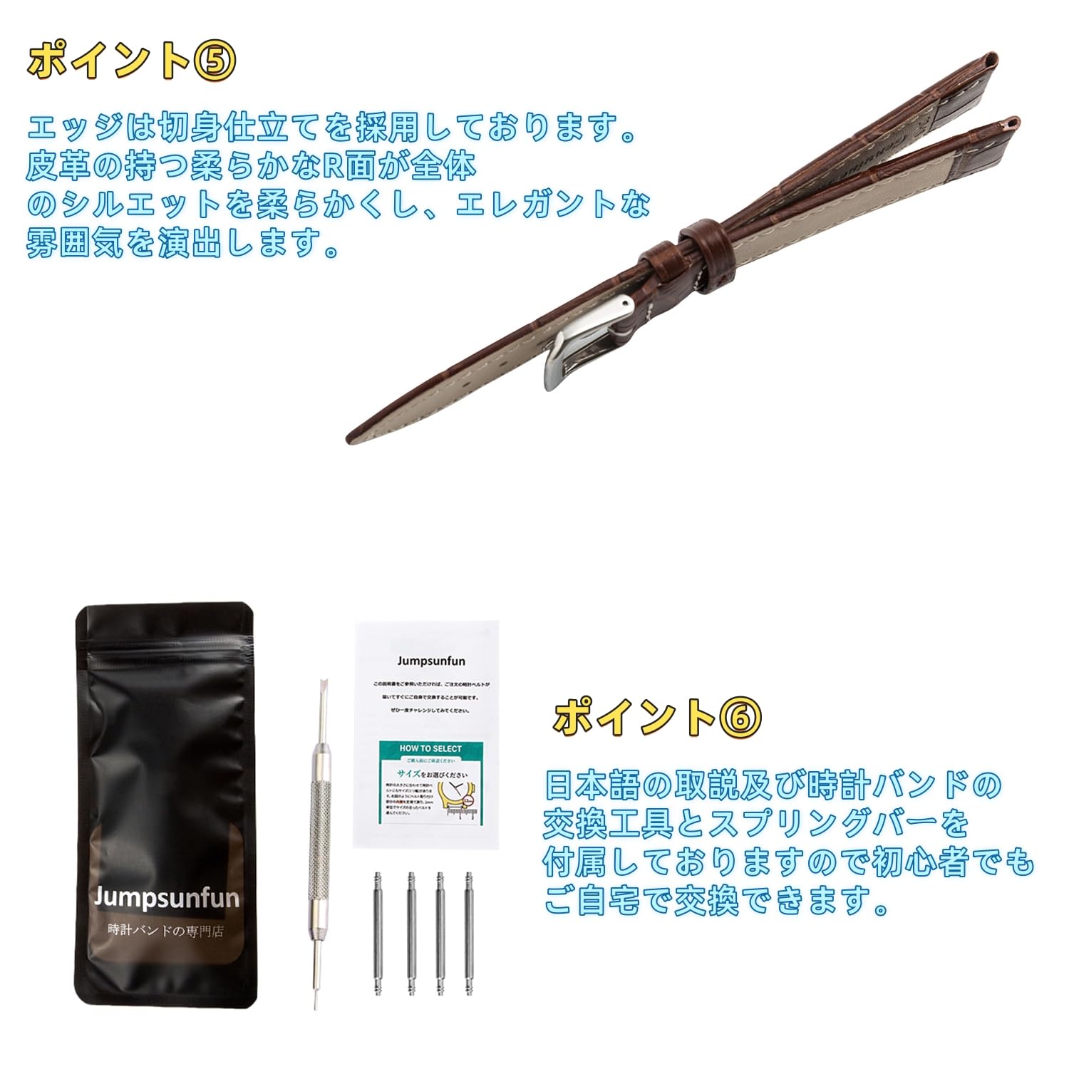 『誰でも、気軽に、手軽に、素敵に、日常を彩る時計バンド』をコンセプトに商品を展開するJumpsunfunはメーカー純正品と遜色ない時計ベルトを、よりリーズナブルに提供しているのです。時計バンドの交換をぜひご自分で試してください。