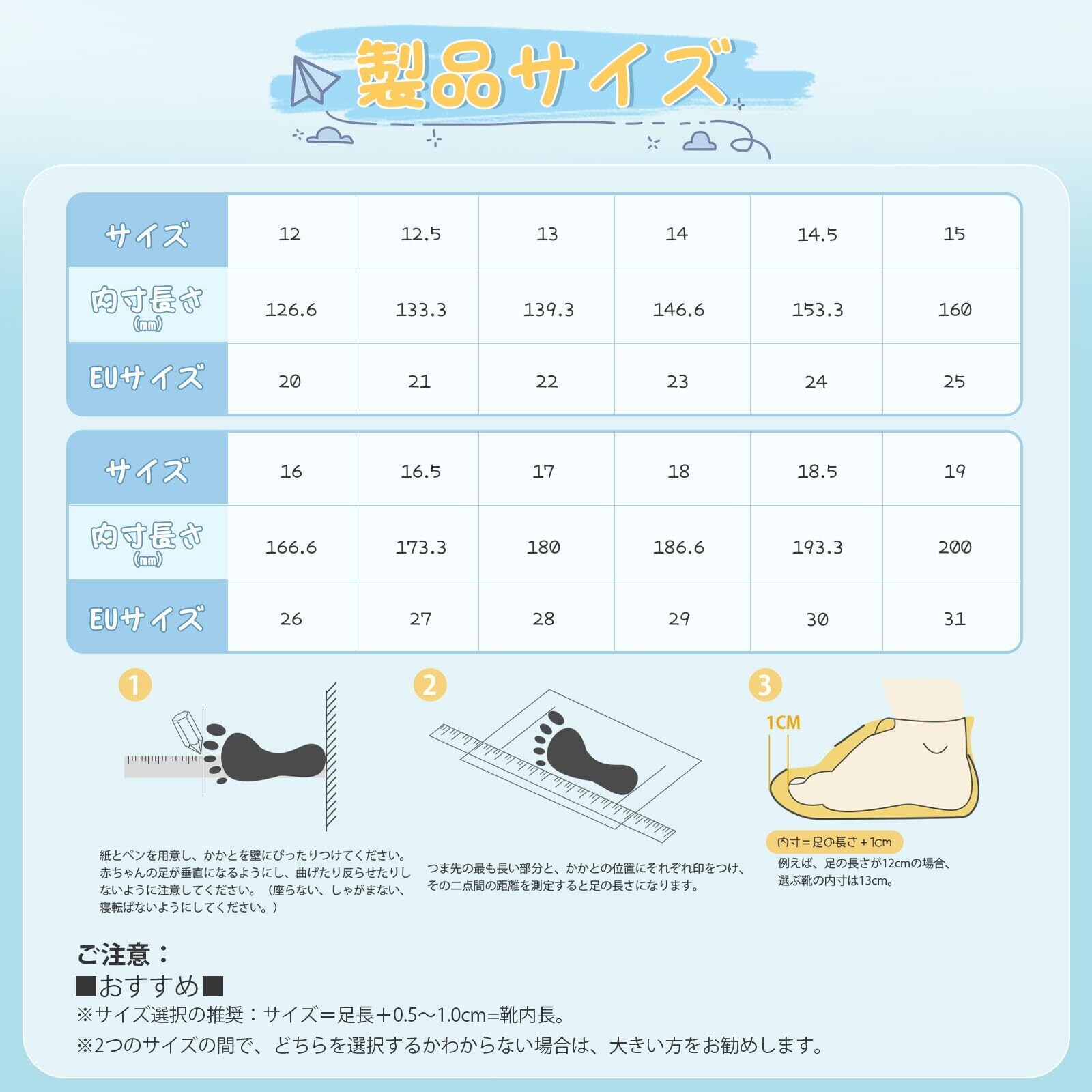 足に優しい設計:幅広設計とマジックテープ調節で外反母趾予防可能。足の形にフィットし、お子様の自立支援に最適な履きやすい設計です。
