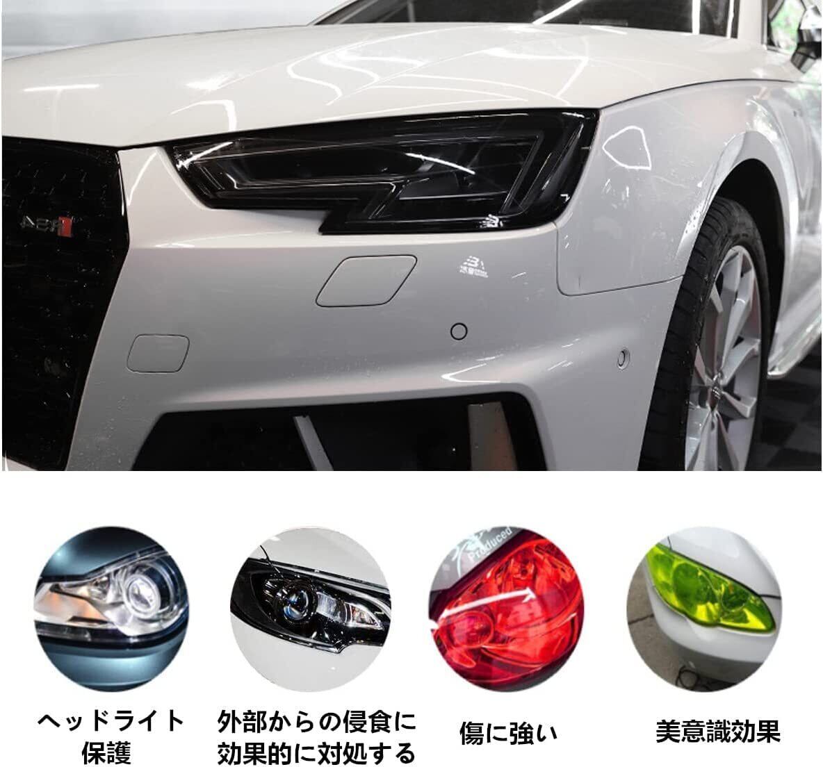 材質:PVC材質で良い透光性・耐候性・ストレッチ性に優れた素材となっております。車だけでなくオートバイのライトも使用できます。サイズ:30*120cm。
