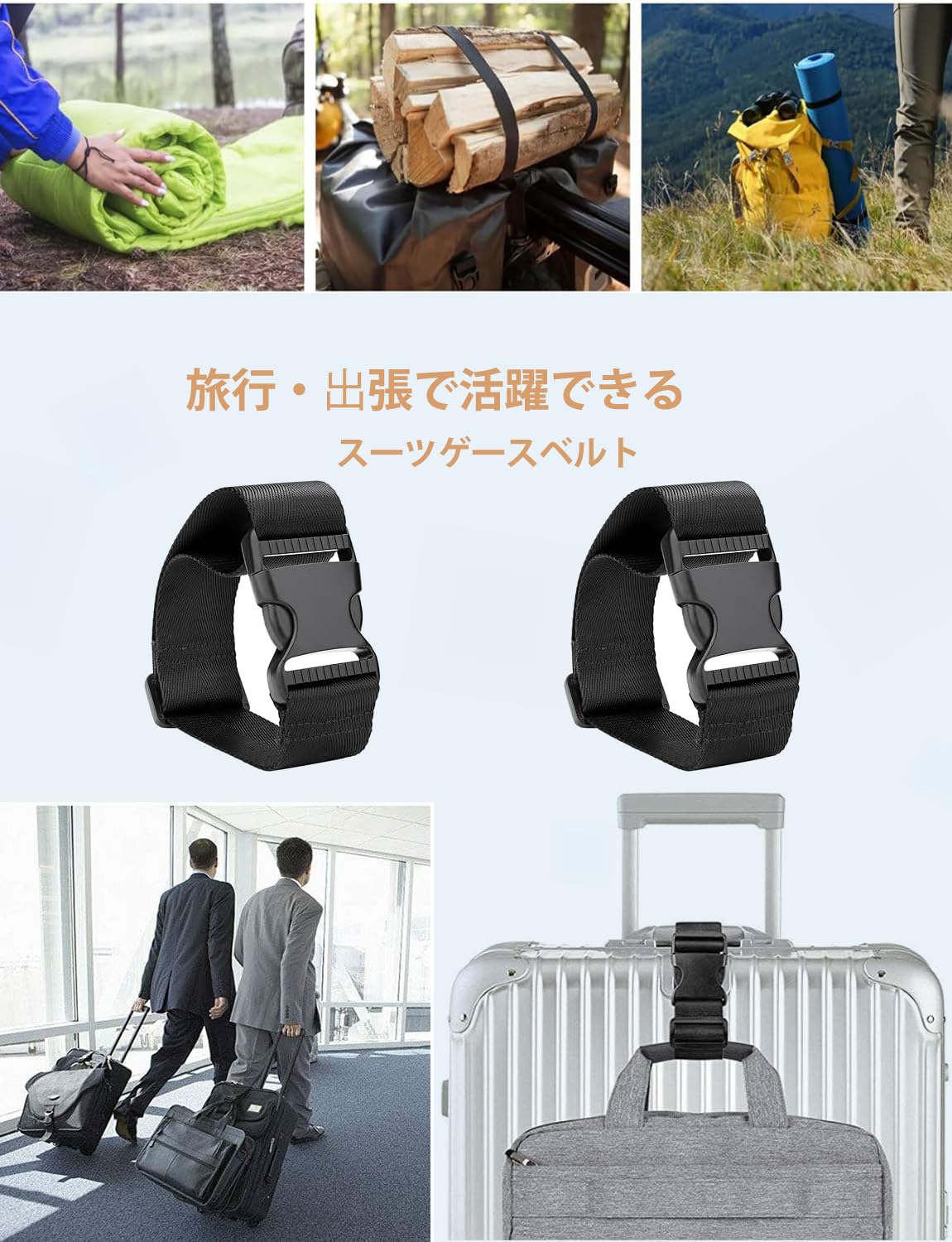 【調整可能】ウエストベルトに25~38cm追加します,水平、垂直方向とも任意に調整でき、いろんなサイズのスーツケースに適用する。ショルダーストラップの長さはアイテムのサイズに応じて調整できます。