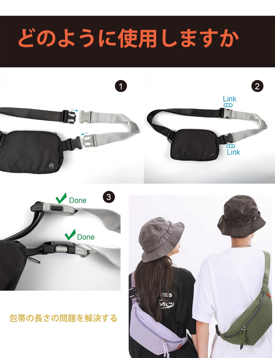 【応用範囲】:ホログラフィックウエストポーチ延長ベルト、ハンドバッグ、スーツケース、ハンドバッグ、ブリーフケース、カート、ホイール式荷物などに適用され、両手を解放して、あなたの旅行をよりよく楽しむことができます