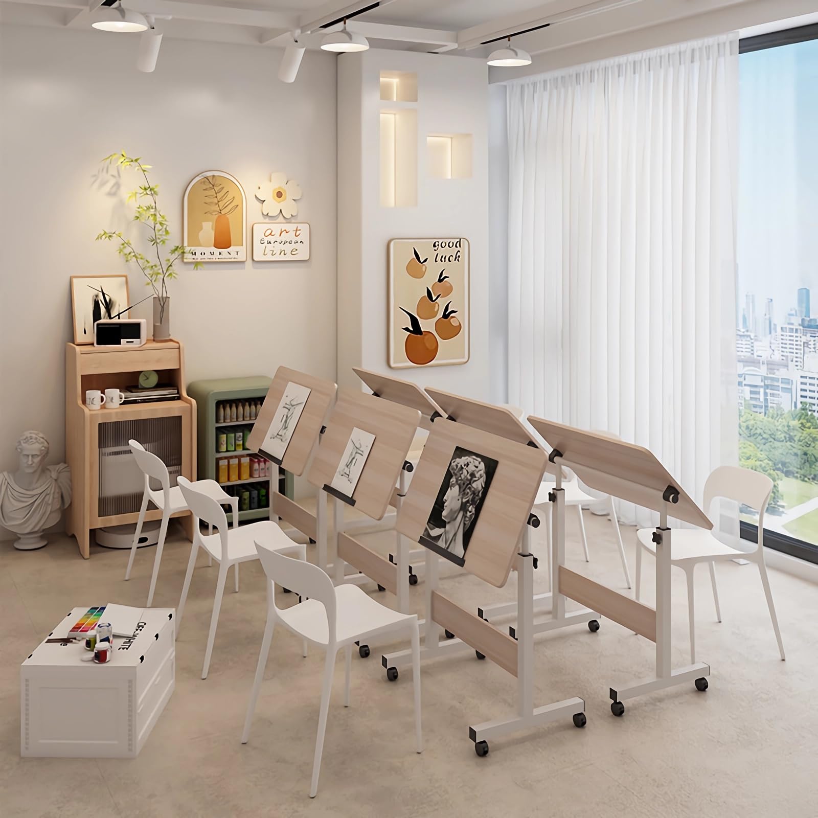 Rshtong 昇降デスク 折りたたみテーブル パソコンデスク 北欧 机 高さ調整 テーブル 幅60cm×奥行40cm PCデスク サイドテーブル キャスター付き 省スペース おしゃれ シンプル 化粧台 作業机 仕事用 組立簡単 (木目調 60*40cm)