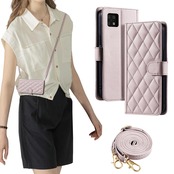 laddutoi FOR AQUOS sense6/sense6s SHG07 SH-54B SHG05 ケース 手帳型 おしゃれ ストラップ付き スタンド機能 カード収納 軽量 薄型 耐衝撃 高級PUレザー 滑り防止 財布型 内蔵マグネット 開閉式 チェック柄 上質 耐摩擦 マグネット式 肩掛け 斜め掛けーピンク