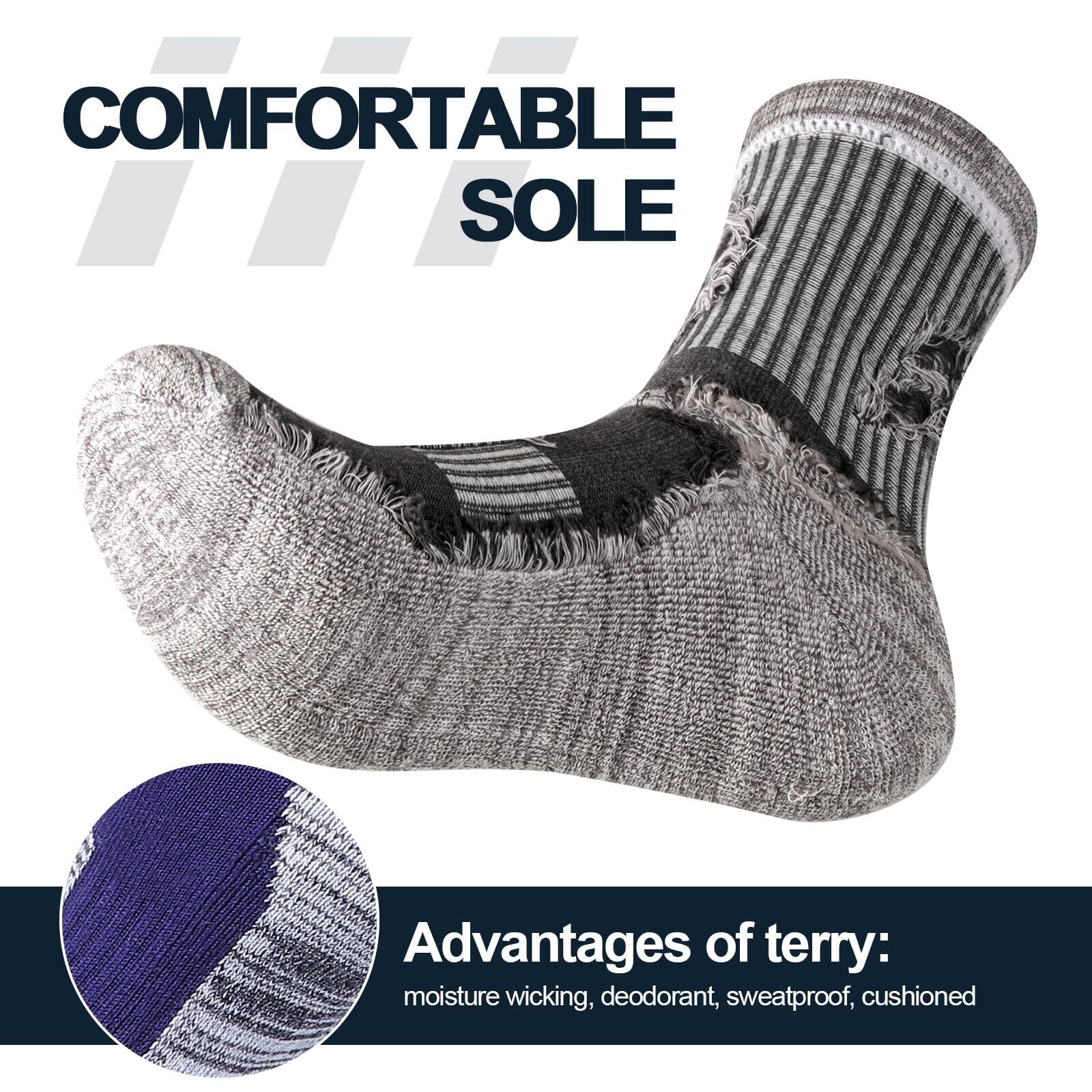 【厚底】クッション性のあるクルーソックスのつま先とかかと部分は、快適で通気性のあるテリークロスで特別に厚くされ、足の裏をドライに保ち、足の臭いを減らし、水ぶくれから足を効果的に保護します。