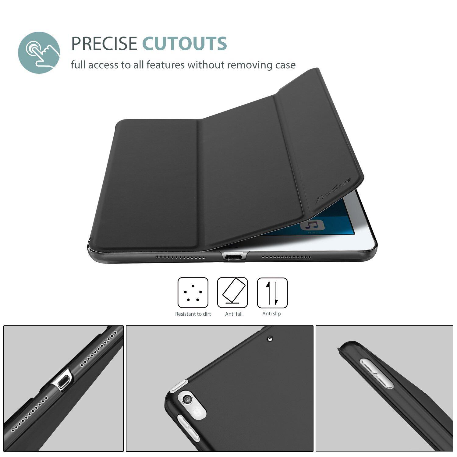 シンプルがクラシックのデザイン;開口部が精確的ですべての機能へ自由にアクセスできます(カメラ、スピーカー、ポートなど)。ご注意:スマートキーボード機能をサポートしません。
