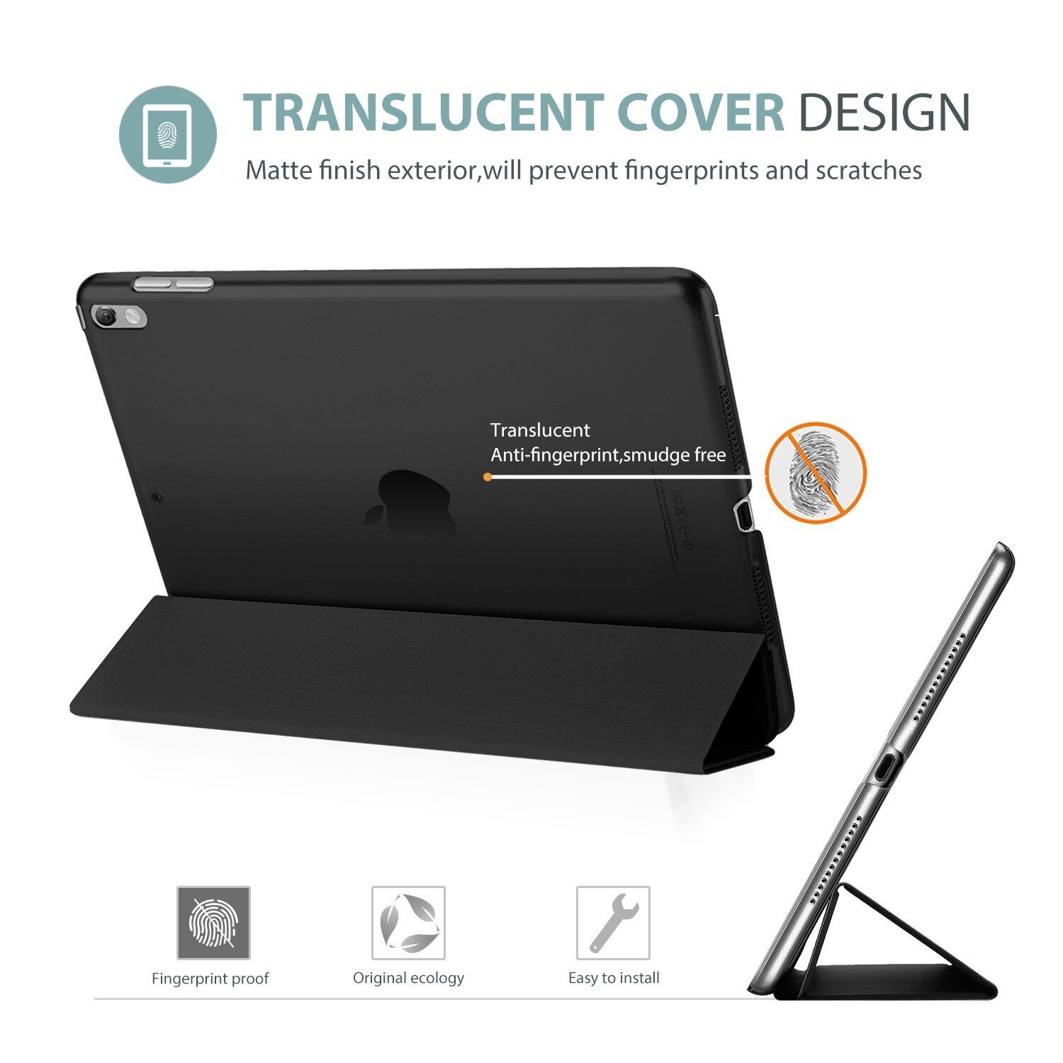 【新着商品】ProCase iPad Air 3 2019 / iPad Pro 10.5" 2017 用ケース 超スリム 三つ折スタンド オートスリープ 半透明フロスト バックカバー - ブラック