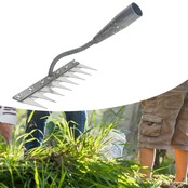 【ガーデニングツール】:除草レーキは、除草とガーデニングの作業を迅速かつ簡単に完成させるのに役立ち、非常に実用的なガーデニングツールです。この鋼製の耙は、地面を深く掘り起こして土を緩め、草根をしっかり掴んで除草することができます特に大きな畑での作業には欠かせないアイテムです。