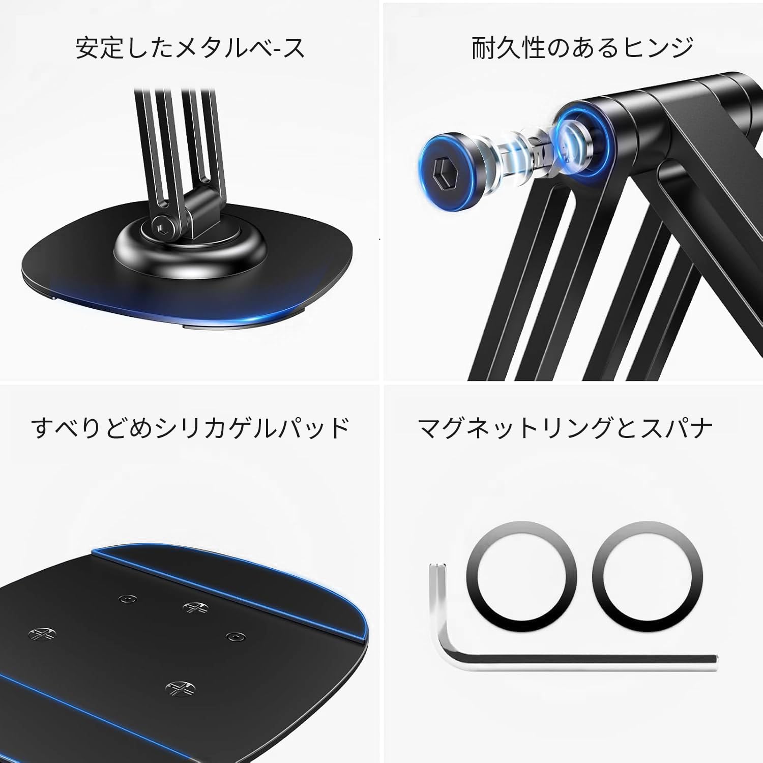 スマホスタンド MagSafe 対応 360度回転 三関節折り畳み式 卓上携帯置きスマホスタンド iPhone16 15 14 13 12 シリーズ 対応 MagSafeケース対応 マグネット強力固定 角度自由調節 (ブラック)