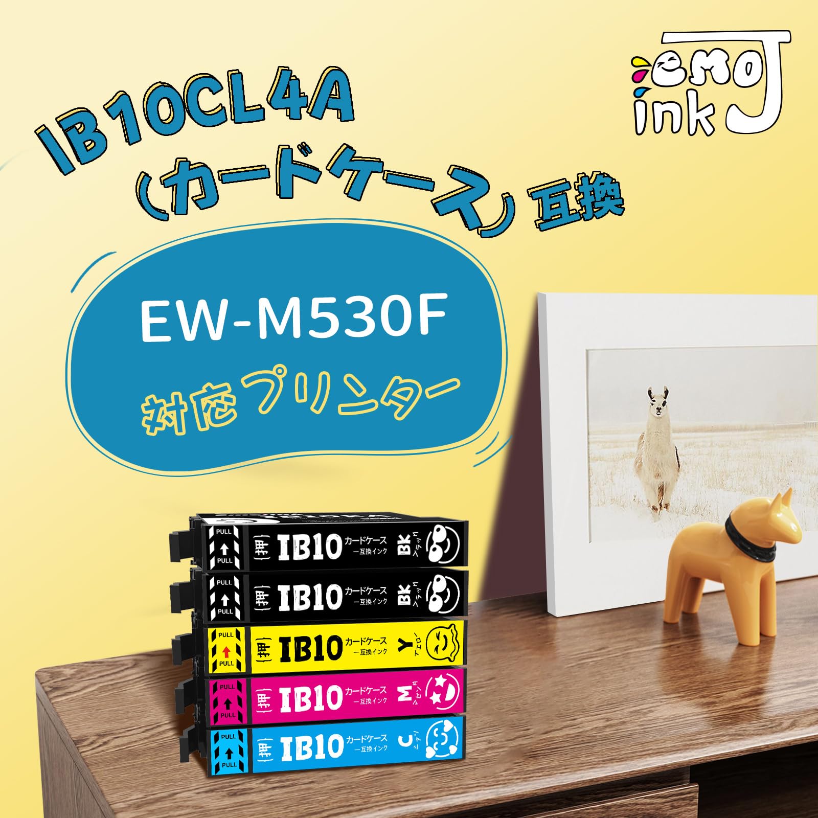 Emojink IB10CL4A EPSON対応 IB10 カードケース 互換 インク エプソン用 EW-M530F プリンター IB10KA IB10CA IB10MA IB10YA 黒2本 インクカートリッジ 残量検知対応