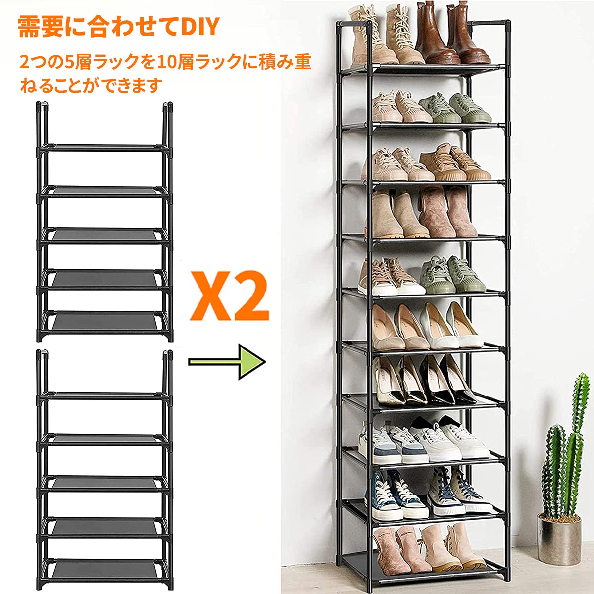 【シューズラック 組み立て簡単、分解容易】軽量且つ取り外すも可能で、引っ越しする時はすごく便利です。組立はあまり力を要らず、工具も不要な,女性の方でも手軽に組み立てることができます!日本語説明書付き