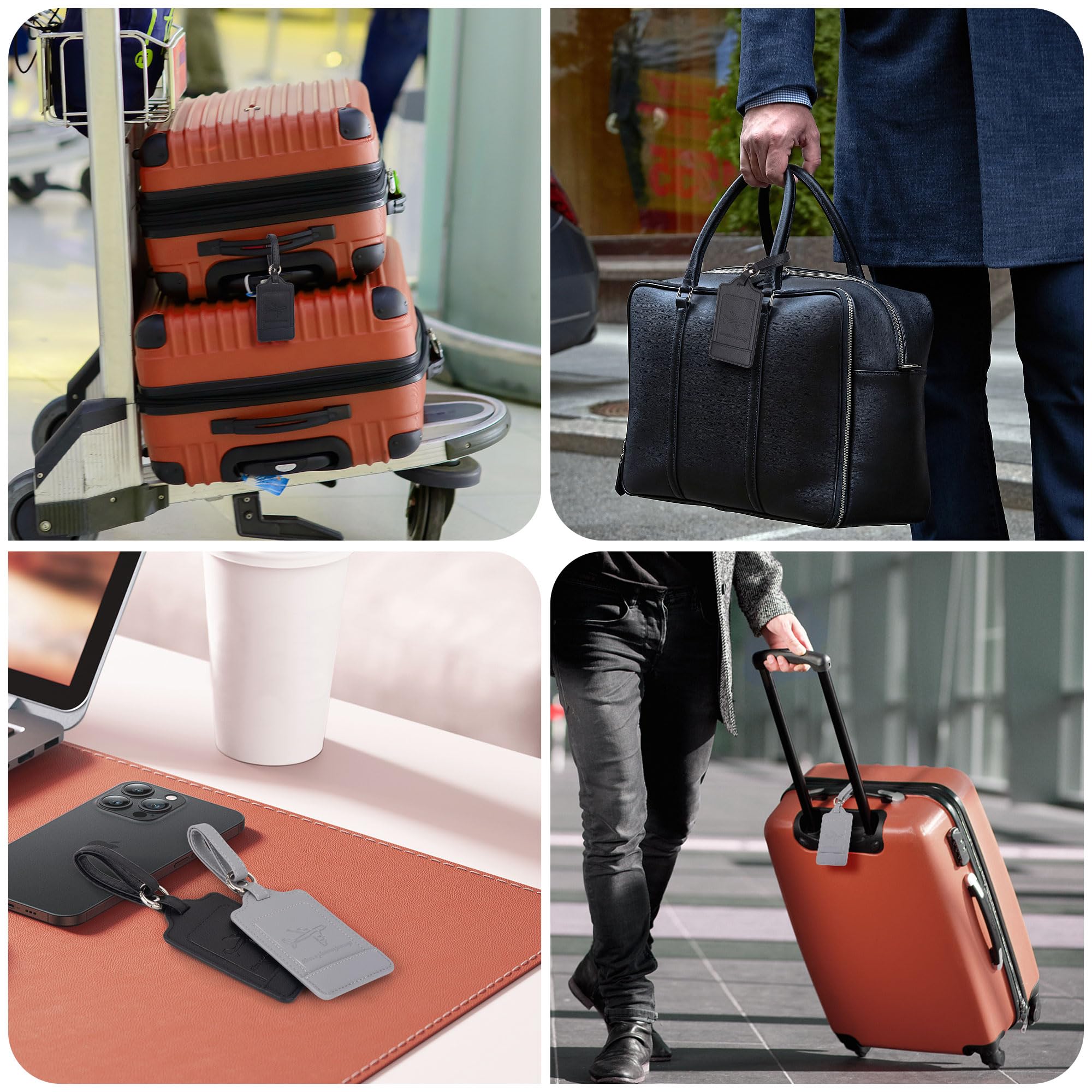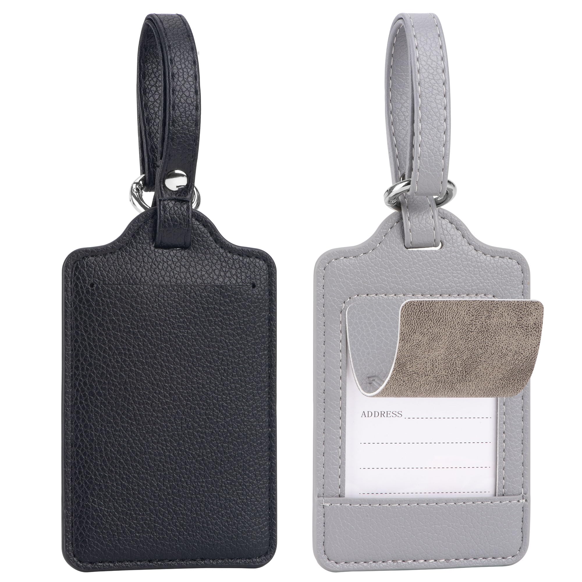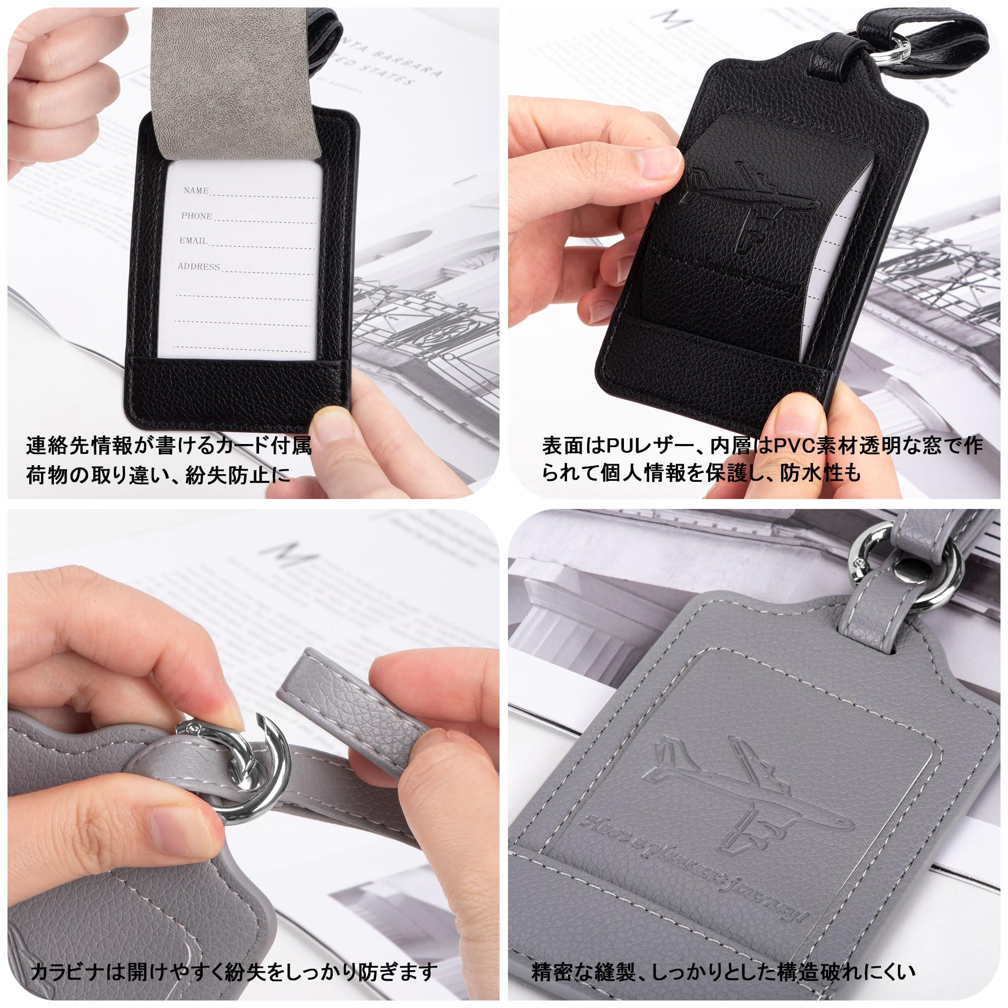【特価セール】[2枚セット] 荷物タグ ネームタグ - スーツケースタグ スーツケース名札 紛失対策 名前ラベル IDカード用 社員証 レザー バッグ用ネームタグ 柔軟 防塵 番号札 出張用 旅行 軽量 Migeec