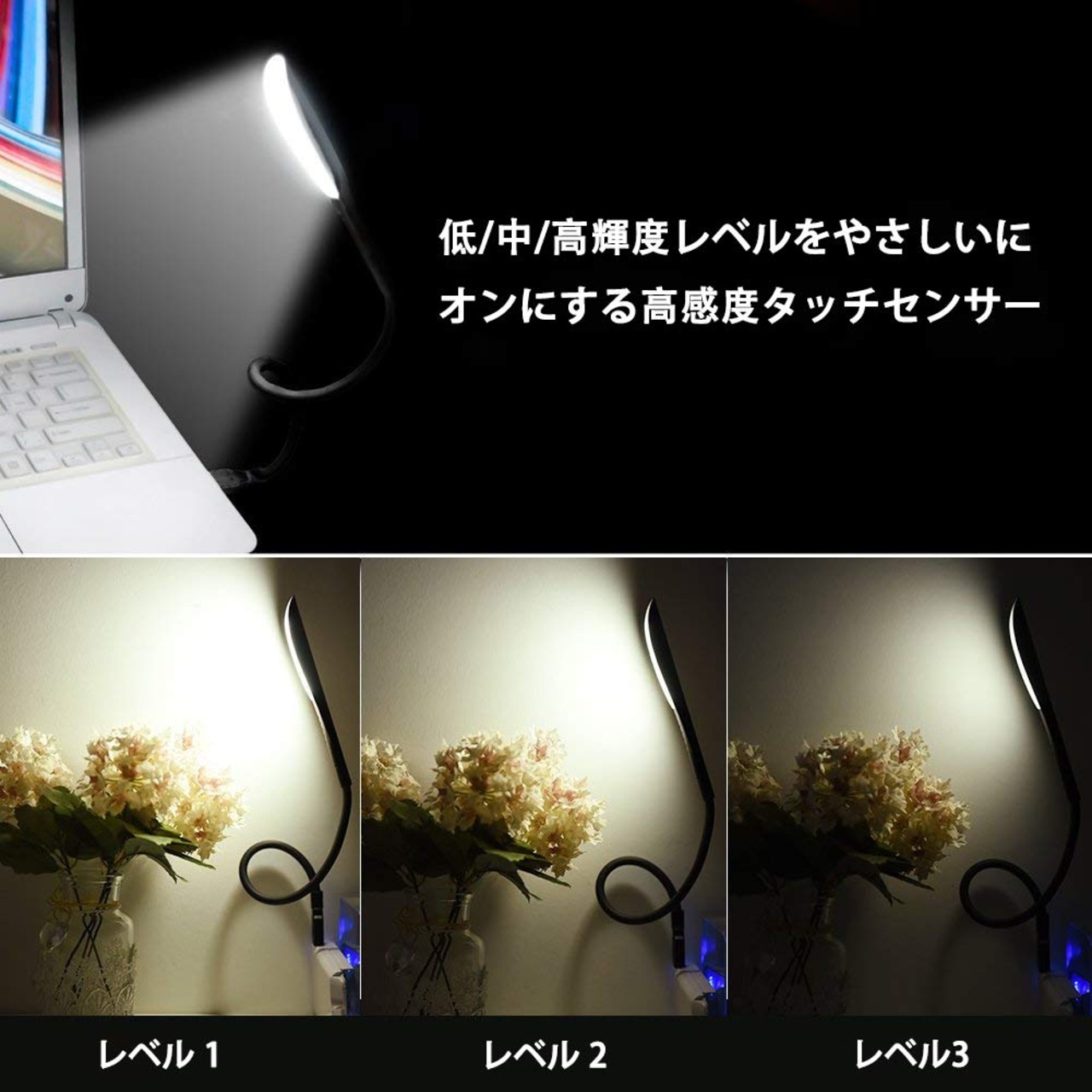調整可能な明るさ(柔らかいライト、白いライト、ハイライト)とタッチスイッチは、君のお好みを満足します。